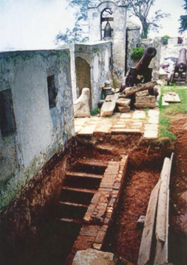 1996年還在東北與東南棱堡之間的山坡發現建築痕跡,可能是Lima Carmona船長描述的炮台東側的附屬半月堡。
