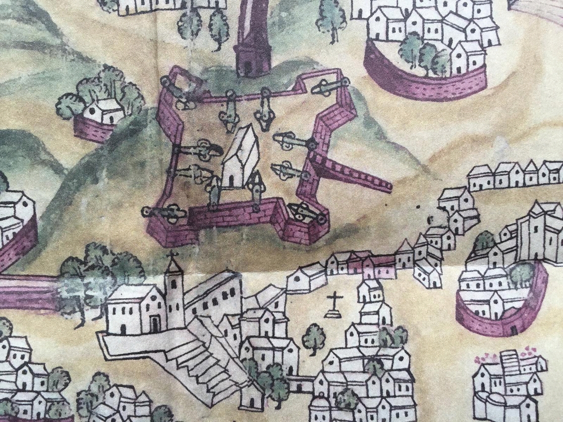 該書收錄澳門圖中的大炮台,明顯將其描述圖像化,四邊形的炮台中央建有房屋,四周佈有火炮,而南面建有一道大階梯連接山腳下的城市。