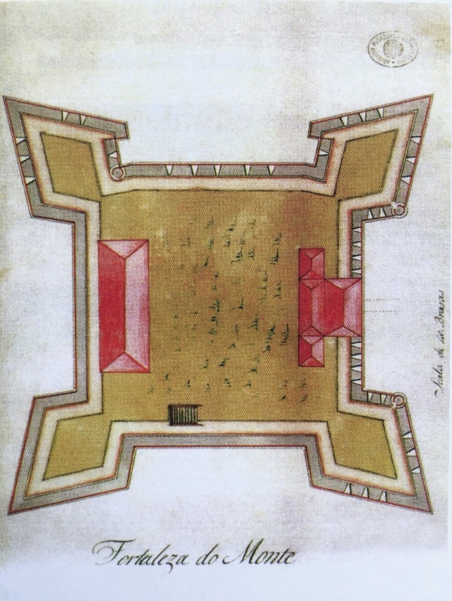 波卡羅亦提及當時大炮台的規模:炮台呈四邊形,其上有邊長100步(Passo:古代歐洲量度單位)的廣場,牆的每邊邊長相近,牆的四角各有一個棱堡作窺視用;在廣場中央有一座三層高的主塔樓,每一層都有一門火炮;廣場邊緣有四排房屋,一排是首領和其軍官的住宅,另外三排則是衛官和士兵的宿舍,這層地面通過營房兩側的兩個台階與入口處地面連接。炮台的入口朝南,有一寬敞的房子用於儲存炮彈、引信、導火索及火藥。