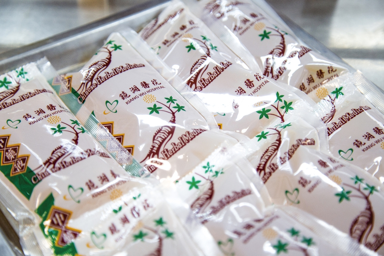 要配製足夠全院員工飲用的涼茶,工作量不小。李劍恒介紹,一般來說,清熱解毒類的藥物(如醫院的涼茶處方),單人份量只要煎煮20至30分鐘即可,但要製作可供全院1,000人飲用的涼茶,便要請膳食科協助煎煮。「為了保證藥材煎煮透徹,要預先浸泡藥材半小時才開始煎製,整個過程需要約一個半小時,其間還要不斷攪拌,避免煎煮糊底。為了方便飲用和儲存,涼茶煎煮好後會通過真空包裝,成品可以存放一個星期不變質。」