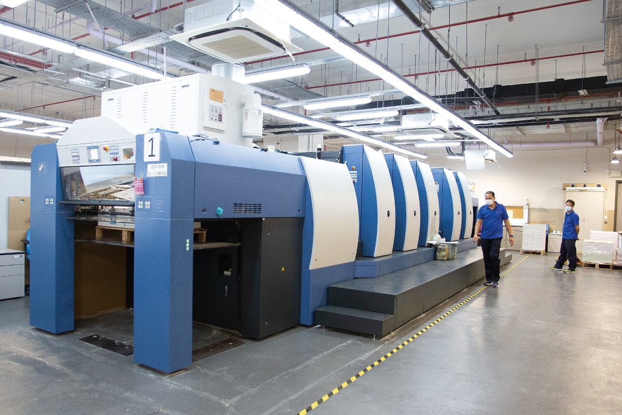 吳文桂稱,為了提高生產效率,搬入新的政府大樓後,在廠房面積許可的條件下,印務局購置了一部五色柯式印刷機(見第18頁)。原先部門需要分開兩次印刷的刊物,現在可以同時完成,既節省成本,亦減少能源消耗。整部機身以藍白二色為主調,體積龐大的五色柯式印刷機在廠房中佔據了重要的位置,現時印務局的大部份業務都要依靠它來完成。