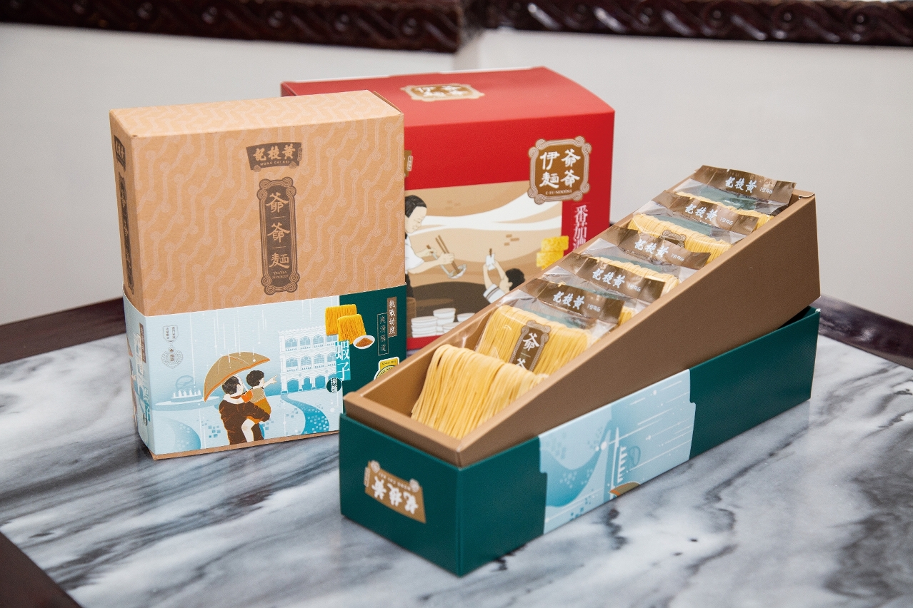 近年,黃枝記推出了禮品麵系列產品,賦予了麵食全新的概念。由黃與飛研發的「爺爺麵 - 蝦子撈麵」,便於2019年獲得了世界四大美食獎之一的世界品質品鑑大會金獎。談及爺爺麵,黃與飛腦海中浮現的,滿是對爺爺的回憶。「我小時候常跟着爺爺到處覓食,爺爺精益求精,嘗試了別家的麵後,會鑽研改良自家出品,我因此與麵結緣,亦促成了爺爺麵的誕生。」