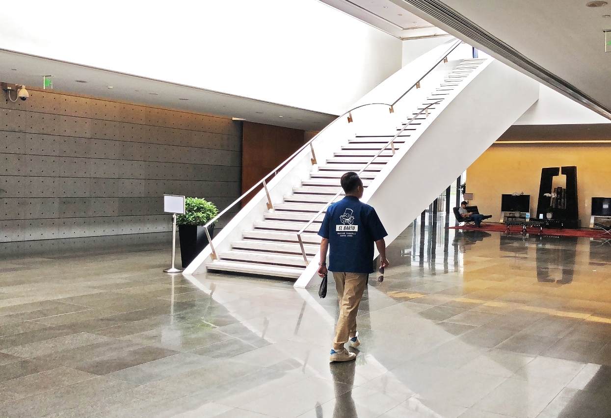 會議大樓的內部同樣採用簡約設計風格,入口大廳由於頂部透光亦形成一個室內「中庭」,陽光隨時間轉移在白牆上,上演光影變奏,形成像水墨般的抽象效果。
