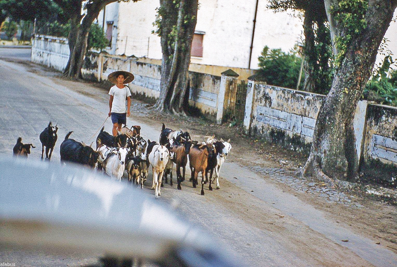 1950年代,我家門口對正大炮台,常見炮台下之山坡,有為數不多的草羊在吃草;望廈區的街道上,更常見羊群路過。