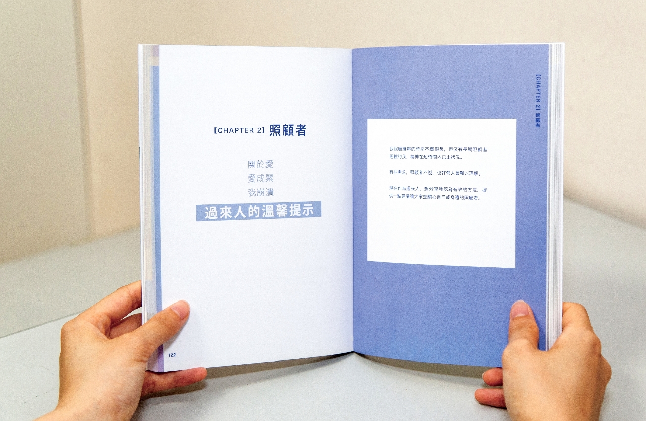 「由於我曾出現情緒問題,所以在書中用了較大篇幅分享照顧者的心路歷程,書中提到一些建議與方法,給照顧者及其家人一個參考。」悅程表示,長期病患的家屬若能共同承擔照顧的日常工作,照顧者壓力會大大減輕,最好有兩人或以上的照顧者進行交替照顧。其次,照顧者也須量力而為,保持有充足的休息時間。如發現情緒及精神體力出現異常,應及時向家人、朋友或社工求助。