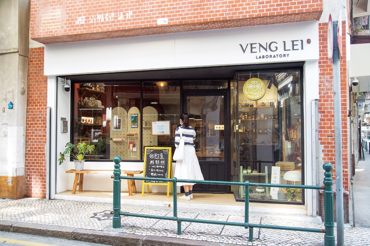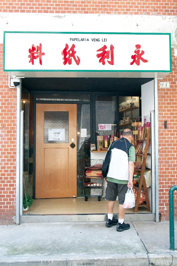 漫步於草堆街,在一個十字路口,可以看見一間新舊交融的店舖,街角側面的手寫舊式招牌上書「永利紙料」,門前擺放着神香及紙料等祭祀用品,店舖正面是結合時尚、精緻韻味設計的門面,店名是外文「VENG LEI」,在舊社區中特別耀眼。