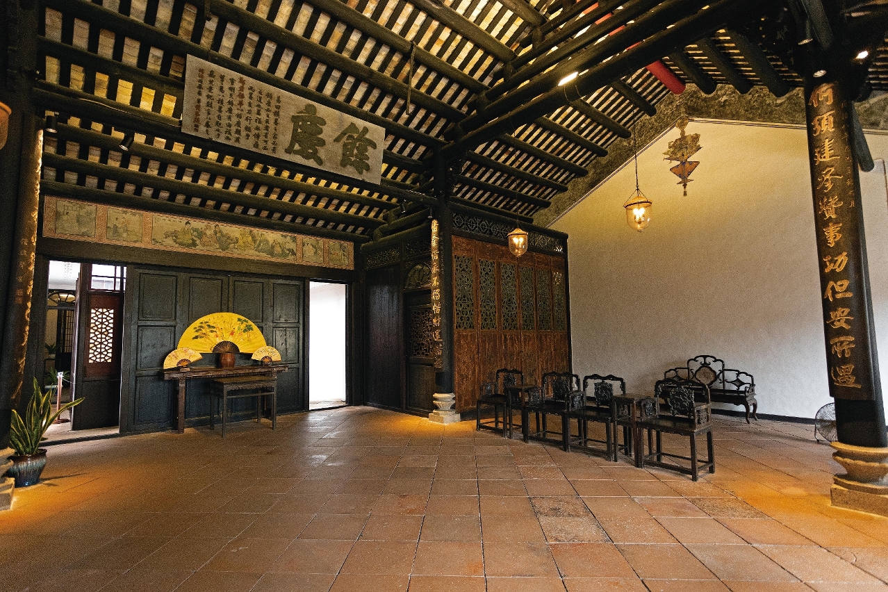 建築物室內以傳統中式設計,但廳堂設在二樓,有別於一般置於地面層的傳統做法。