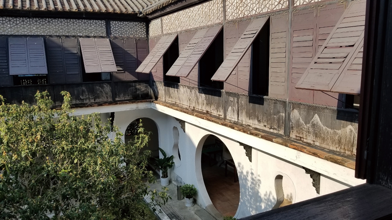 主房區與僕人房區之間,設有四方形內院,由一條L形迴廊及兩座房屋圍合而成,迴廊下層開敞,設有中式月門及葫蘆形窗洞,柱子卻具有西式的柱帽與柱礎;上層設有連續的排窗,並裝有貝殼窗和支摘式木百葉窗。