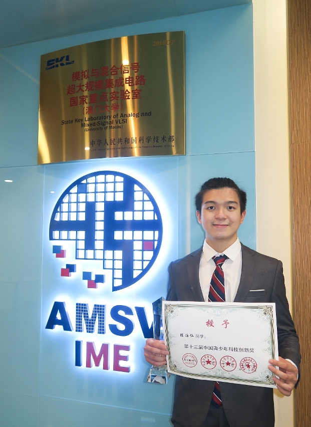 進入澳門大學後,在電機及電腦工程系林智聲副教授的推薦之下,陳泊仁加入模擬與混合信號超大規模集成電路國家重點實驗室的集成電力研究團隊,並連續4年獲得各項獎學金。他的團隊更將新一代電流質量補償裝置的研究成果實際應用到澳門自來水公司的項目中,實現節能減排。