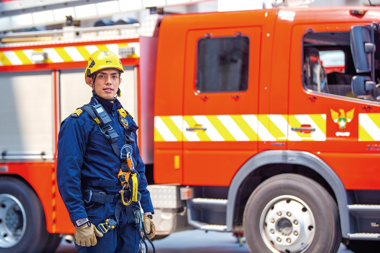 消防工作講求團體合作精神。現隸屬消防局海島行動廳的首席消防員陳啟聰介紹,消防員除了要不斷提升個人救援技術,還要培養和提高隊員間的協作能力,從而提升救援效率。「消防員平日的主要工作有:處理火警事故、救援任務及救護事件等。不用出動時,便會進行日常操練,包括:救援車輛及工具操練、模擬火警及救護事件的操練,以及高空拯救訓練等。」