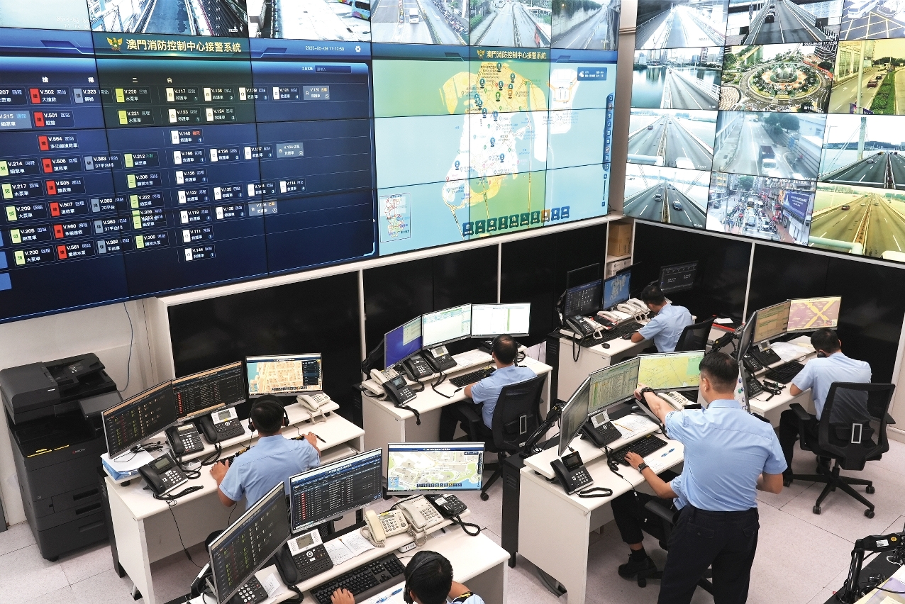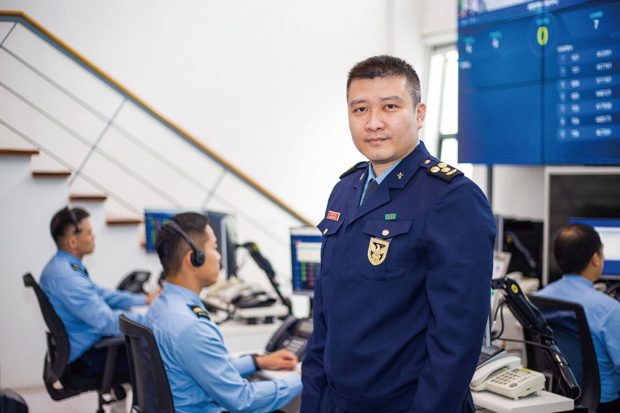 「喂,接報中心⋯⋯」位於消防局總部內的控制中心,每日24小時無間斷地接聽澳門市民的求助電話。消防局一等消防區長梁偉成介紹,當控制中心接到市民的求助電話後,會先詢問求助事件性質(如交通意外、火警、救護事件等)及事發地點,接着接報調度員(下稱「接報員」)會根據事件類型,調派相關類型的救援車輛出勤,出勤後會密切監察每宗案件能否達成服務承諾。「我們的服務承諾是由控制中心向行動站發出出動命令後,行動站車輛須在1分鐘內出動,以及在路面狀況正常下,須在6分鐘內到達現場。」