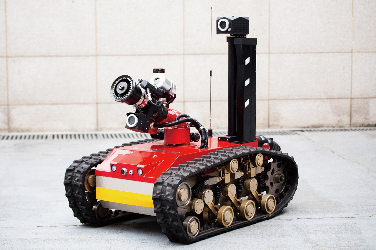特點:主要用於存有大量危險品或火場面積較大的火警事故中,具有耐高溫及防爆防水功能。其機身雖小,但亦設有消防喉筆,噴射水或泡沫射程可達60米,同時具有熱成像搜救及氣體探測功能,可遠程控制進入拯救現場作搜索工作。最重要是,機械人能代替消防人員進入較為複雜、且有機會危及性命的災場,即使火場需長時間進行射水降溫,機械人亦能自行運作,節省人力,確保人員安全,有效降低前線人員執行職務時受傷的風險。