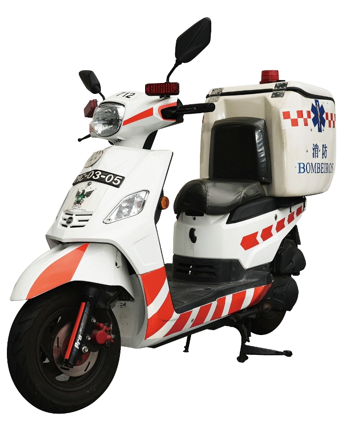 特點:澳門舊區大多地小路窄,且經常遇到交通堵塞的情況,小巧靈活的電單車可較快到達事故現場展開初步的救援工作,可避免因交通情況延誤救援效率,現時多個行動站都有配備作不時之需。