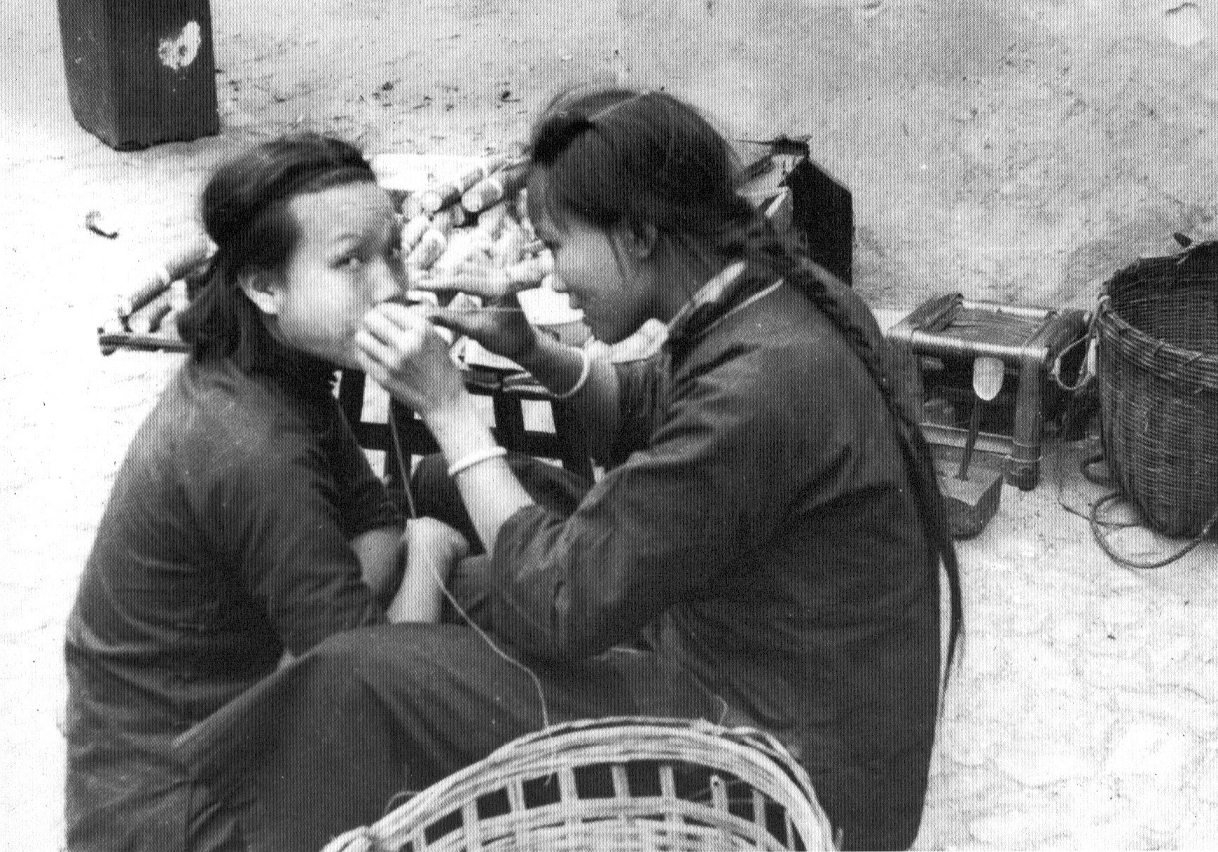 來梳頭的客人多半要求同時做絞面。絞面是中國古傳的美容手藝,又稱開面、線面,「梳頭婆」多兼善此法。