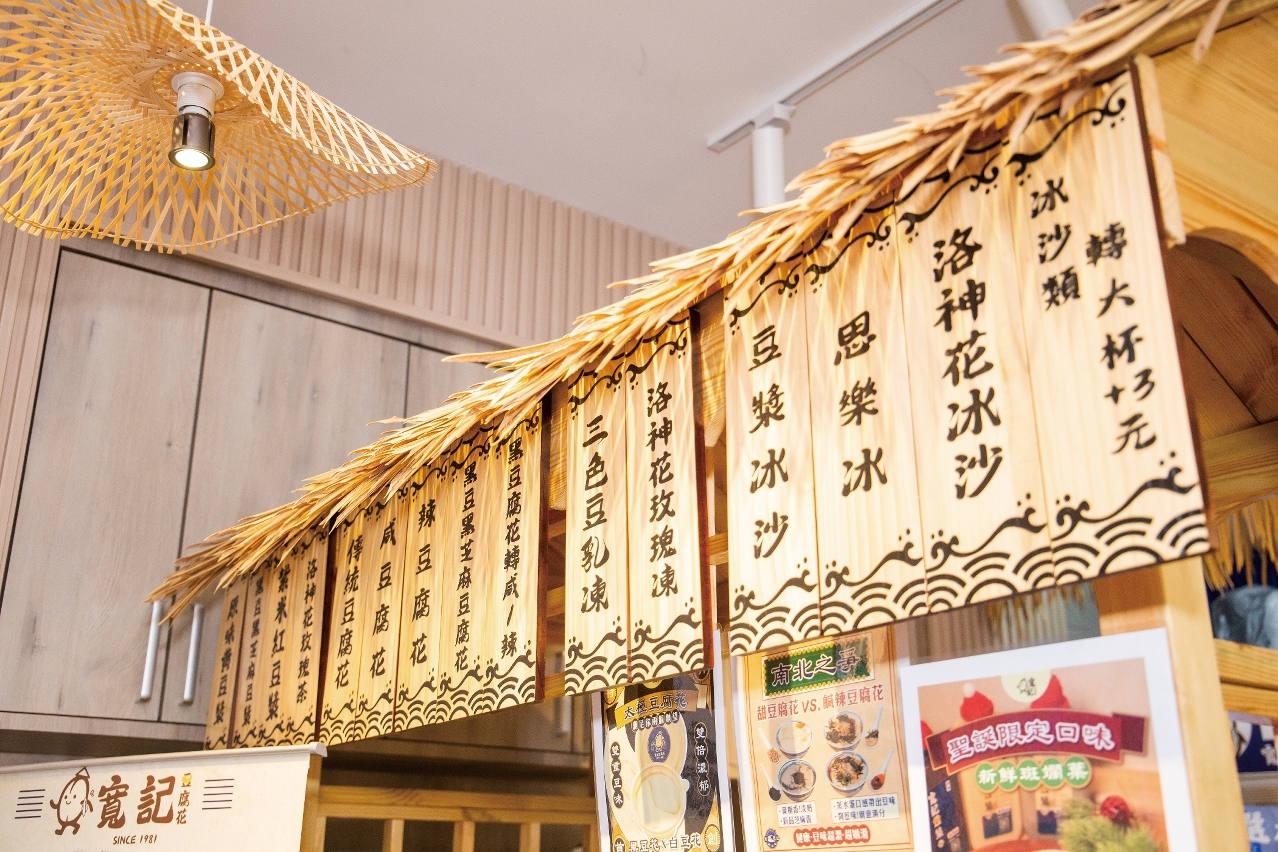 鹹辣豆腐花、太極黑白豆腐花、聖誕限定班蘭椰漿豆腐花……菜單上琳琅滿目的口味,將傳統和創新融合,改變人們對豆腐花的刻板印象。「我想向大眾推廣不同口味的豆腐花,如奶茶、咖啡一樣,讓大家有更多選擇。」黎栢鴻說,豆腐花和豆漿都是健康食品,為了吸引更多年輕消費者,在宣傳和包裝上花了不少心思。他以豆漿的包裝為例,會貼上印有寬記品牌形象的圖案貼紙,在剛過去的聖誕節,更特別在豆漿的瓶蓋戴上迷你聖誕帽作裝飾。「不少客人都會拍照放到社交平台上,達至更佳的宣傳效果。」