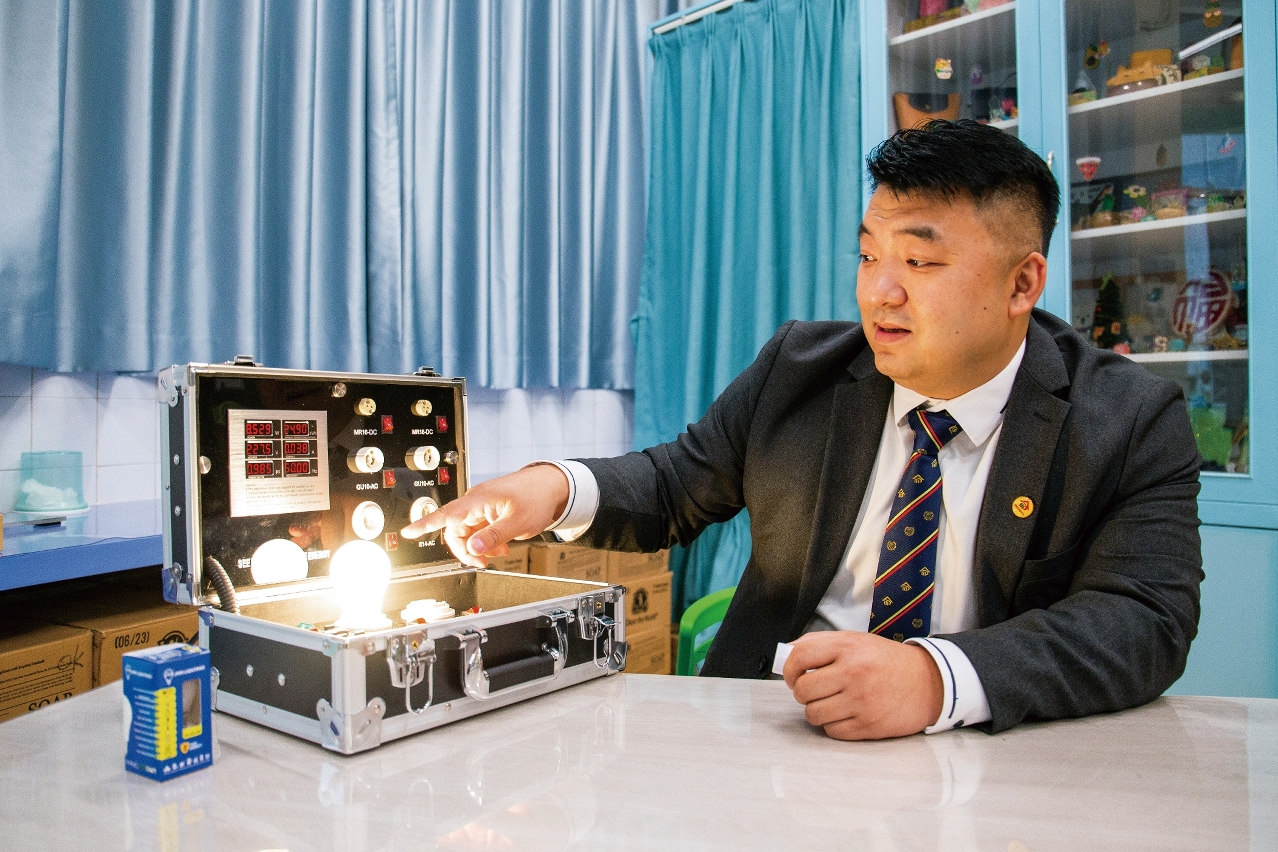 為了迎合澳門家庭及公商業使用電光管的特性,公司還專門研發出液體濾光護眼光管。農曆新年前,他便親自帶隊到澳門弱智人士家長協進會曉光中心,免費為他們更換光管,回饋社會。「一部份輕度弱智人士或自閉症人士,對光的敏感度較大,若使用了低藍光、較柔和的光線,將有助減低刺激他們的情緒。」