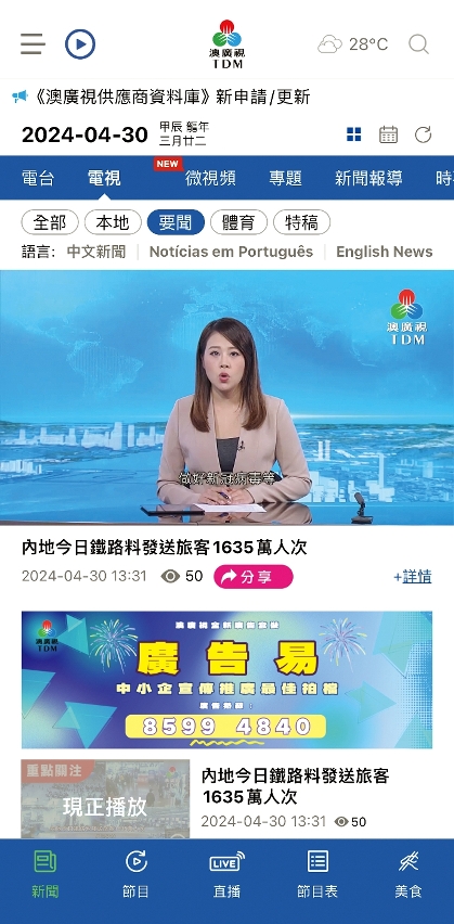 在粵港澳大灣區方面,澳廣視和廣東省等多個電視台、電台建立了長期的合作交流機制,包括共享新聞時事、節目、聯合製作等。2025年,全運會將在粵港澳舉辦,羅崇雯表示,澳廣視很期待與粵港兩地電視台攜手合作,展現運動之美。