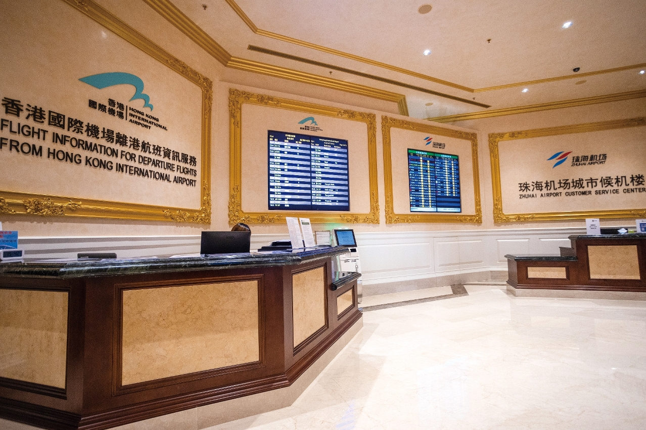 今年5月,為加強粵港澳大灣區機場群的互聯互通,便利國際旅客及澳門居民往返香港國際機場及珠海機場,港澳機場客運服務有限公司、香港國際機場(中國)有限公司及珠海市珠港機場管理有限公司,聯合在澳門威尼斯人酒店開設澳門首個港珠機場「雙城」城市候機樓,為往來香港、珠海兩地機場的旅客提供候車、查詢航班信息、辦理自助登機、購買接駁巴士車票等一站式服務。「在構建這候機室時,我們須解決很多法規和流程問題,幸得香港機場管理局和多方部門協調下,才能順利開通投入使用。」目前,該候機樓的珠海櫃台已提供大部份內地航空公司的預辦登機服務,完成手續後便可乘坐直通巴士經橫琴口岸前往珠海機場。