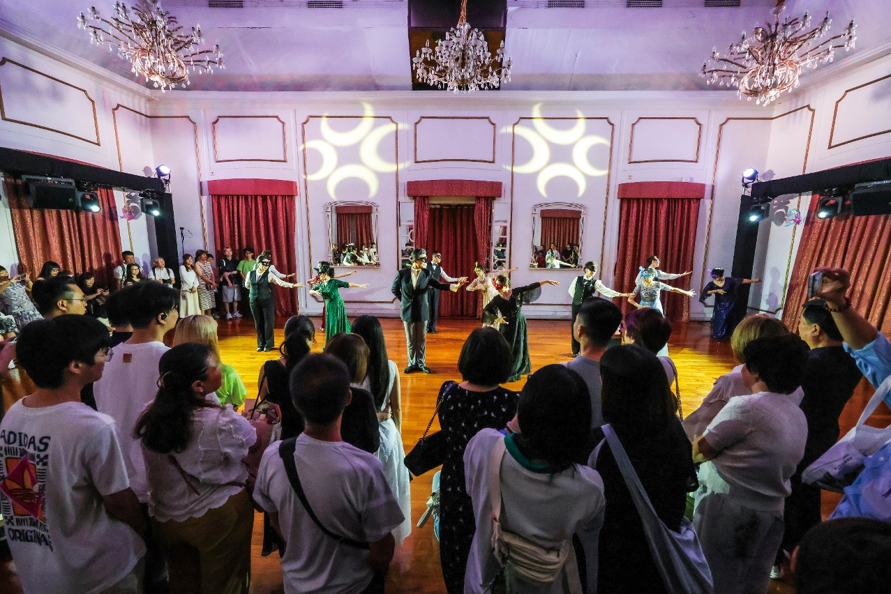 這段愛情故事改編自葡萄牙詩人賈梅士與其中國妻子的傳說,女主角「蘋果綠」的名字呼應劇院清新的綠色外牆,充滿詩意。演出突破傳統觀賞模式,邀請觀眾夜間漫步劇院,隨演員舞步沉浸於表演,體驗一場穿越時空的藝術之旅。「當最後一幕燈光暗下,掌聲在古老劇院中迴盪,觀眾將感受到藝術跨越世紀的震撼。」舒琴表示,這部舞劇不僅是「旅遊+藝術」的創新實踐,更通過沉浸式體驗,深化觀眾對澳門歷史與中葡文化的理解,讓歷史建築與故事在舞台上復活。