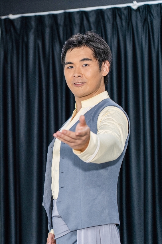 何錦輝是澳門本地演員,曾參演音樂劇、話劇和宣傳片,擅以台詞和表情塑造角色,這次在《伯多祿五世劇院》中飾演男主角葡萄牙詩人賈梅士,挑戰以肢體語言為主的舞劇表演。「排練中,我從零開始學習舞蹈基本功,訓練身體的協調性與靈活性,感受到舞劇的獨特魅力――每個動作都在訴說情感,傳遞訊息。」他舉例,在向女主角示愛後的等待、得到回應時的喜悅等場景中,每個舞步都承載角色的情感,比語言更直抵人心。
