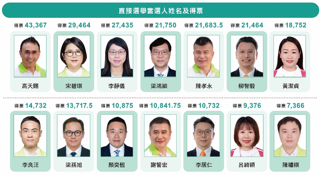 行政長官岑浩輝隨後透過新聞稿,代表特區政府向當選的14名直選議員和12名間選議員致以熱烈祝賀,並對所有參與投票的選民表示衷心感謝。