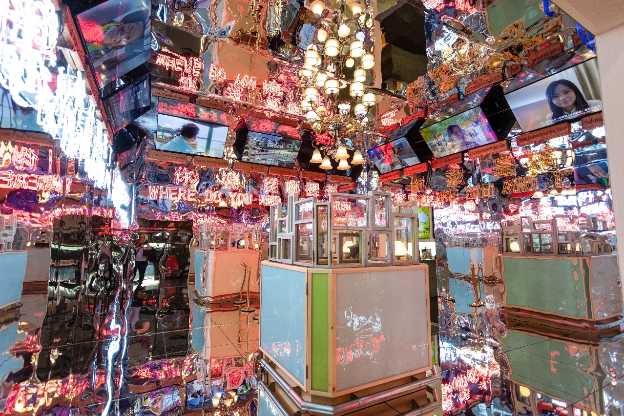 馮博一介紹,「我們嘗試以日常生活空間的設置、命名和解釋,借鑒澳門街區標牌的樣式,『爆改』澳門藝術博物館的展覽空間,折疊出藝術家個人的生存旅程,作為全球化『在地性』的錨點、縮影和容器。」主場展包含入口、宮殿、迷宮、廣場、賭場、街區、裡屋、出口、太空等20個空間,例如藝術家宋冬在「入口」創作關卡裝置,薛峰則在「通道」呈現澳門歷史的虛構檔案藝術。