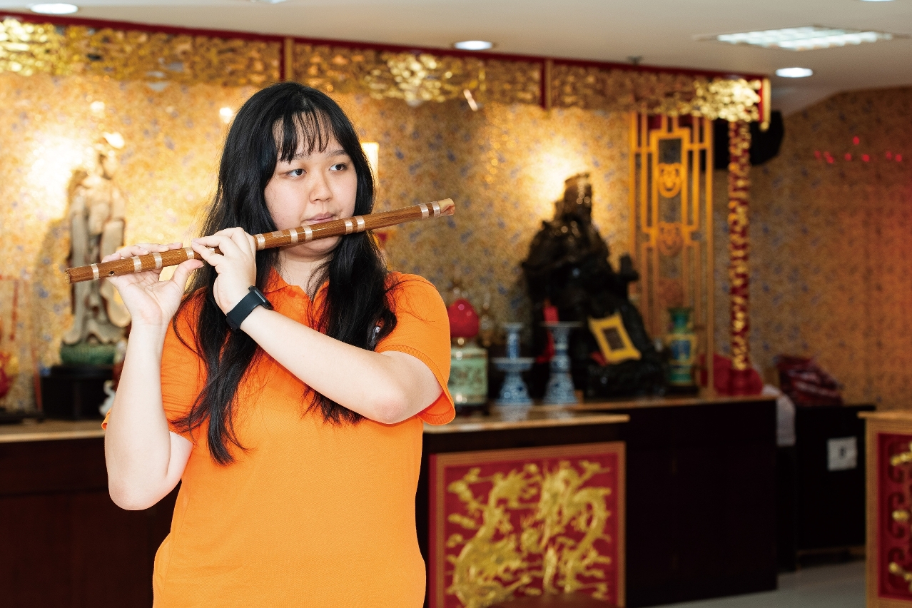 就讀高三的鄭芷晴,於4年前開始學習笛子,兩年前加入道樂團。她笑言,最初是因一部動漫中擅吹笛子的角色激發興趣。「我本就熱衷中華文化,當時看到協會中樂班宣傳,立即報名。」除笛子外,她還學習舞獅,熱愛傳統文化。