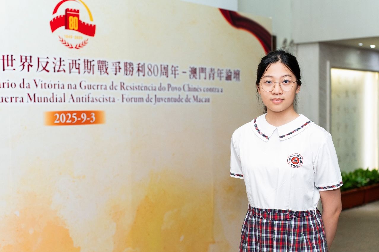 在觀看閱兵儀式直播時,我再一次對祖國的強大感到震撼,軍人們整齊列隊站在天安門前,每一個動作都精準有力。我知道,這樣完美的閱兵效果背後,是他們刻苦的訓練,是無數汗水與堅持。我們有幸生活在一個和平的國家,也感恩能出生在澳門、成長在澳門。這片土地滋養了我,未來我要用自己的力量回報。