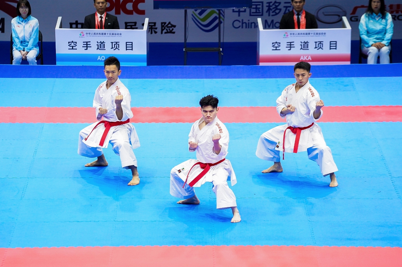 11月6日,在澳門賽區進行的空手道項目中,由郭建恆、方文浩及鄭沘珞組成的澳門男子團體型組合,主場連勝4場奪冠,為澳門在參加全運會的歷史上摘下首面金牌。「我們三人都是懷着『衝金』的決心來參賽。這次我覺得已發揮出運動生涯中最好、最完美的表現。」方文浩興奮地說。