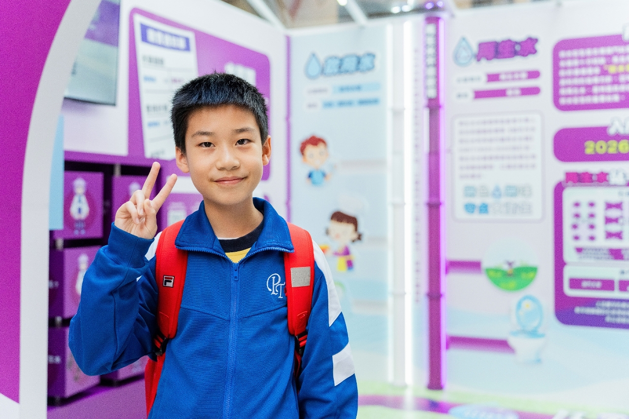 就讀小學四年級的Lambert表示,雖然在學校課堂上曾聽老師介紹再生水,但這次親自參觀資訊站,才讓他對這種環保水源有更深刻的認識。「原來再生水經過嚴格處理後,能達到『無色無味』的程度,雖然目前還不能直接飲用,但可以用來沖廁或綠化灌溉。」他特別提到,社區引入再生水讓他覺得非常棒,「這樣不僅能幫家裡節省用水開支,還能避免浪費寶貴的水資源,對每個人、對整個社會都有好處。我覺得這是很值得推廣的做法!」