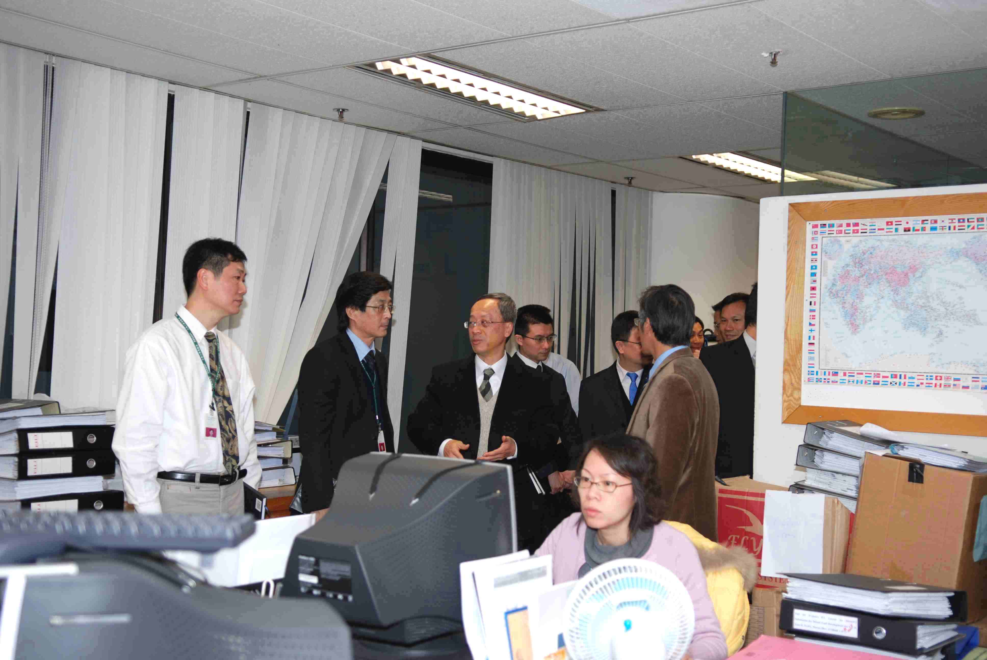 與各領導主管官員交談後,劉仕堯司長逐一參觀了解土地工務運輸局各部門的運作情況,尤其是關注到那些涉及到本澳城市建設、公眾投訴、文件交收及審批建築圖則等部門的運作情形。參觀期間劉仕堯司長更與員工進行親切交談並給予工作上的勉勵;對於反映工作上急切待解決的問題,劉司長亦即時指示相關主管調撥資源作出配合。