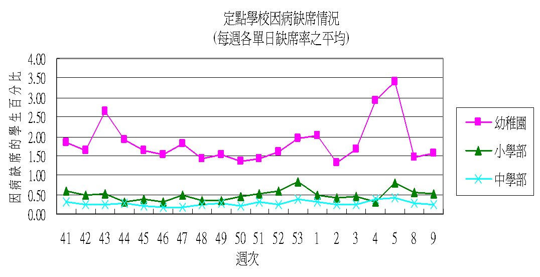另外,根據衛生局疾病預防控制中心的學校傳染病定點監測,36所學校由一月至今,學生主要因發燒和上呼吸道不適病徵缺勤,以幼稚園情況顯著,與去年情況類同。衛生局疾病預防控制中心至今共收到一所學校和一所托兒所部份學童出現流感樣疾病的報告,涉及四十多名學童。症狀較輕微,無需住院治療,均已康復。經化驗,分別證實為甲型H1N1流感病毒和乙型流感冒病毒感染。
