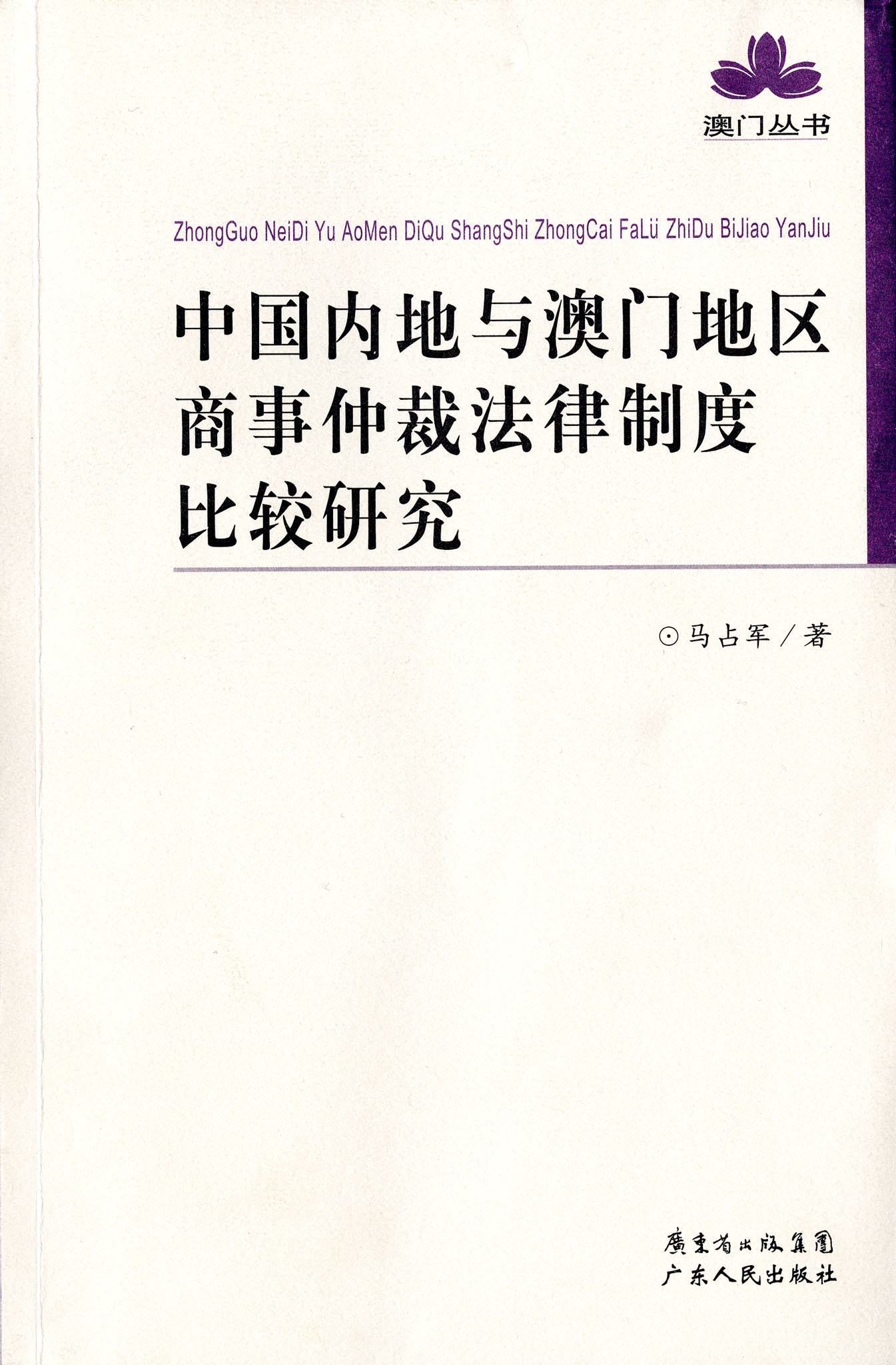由文化局及澳門基金會策劃並資助,廣東人民出版社出版發行的《澳門叢書》系列──馬占軍著《中國內地與澳門地區商事仲裁法律制度比較研究》,以澳門《自願仲裁法》章節體系為線索,從仲裁基本制度、仲裁協議、仲裁員、仲裁程序以及仲裁裁決五個方面,對我國內地和澳門地區仲裁法律制度進行了全面而系統的比較研究,填補了該研究領域的空白。