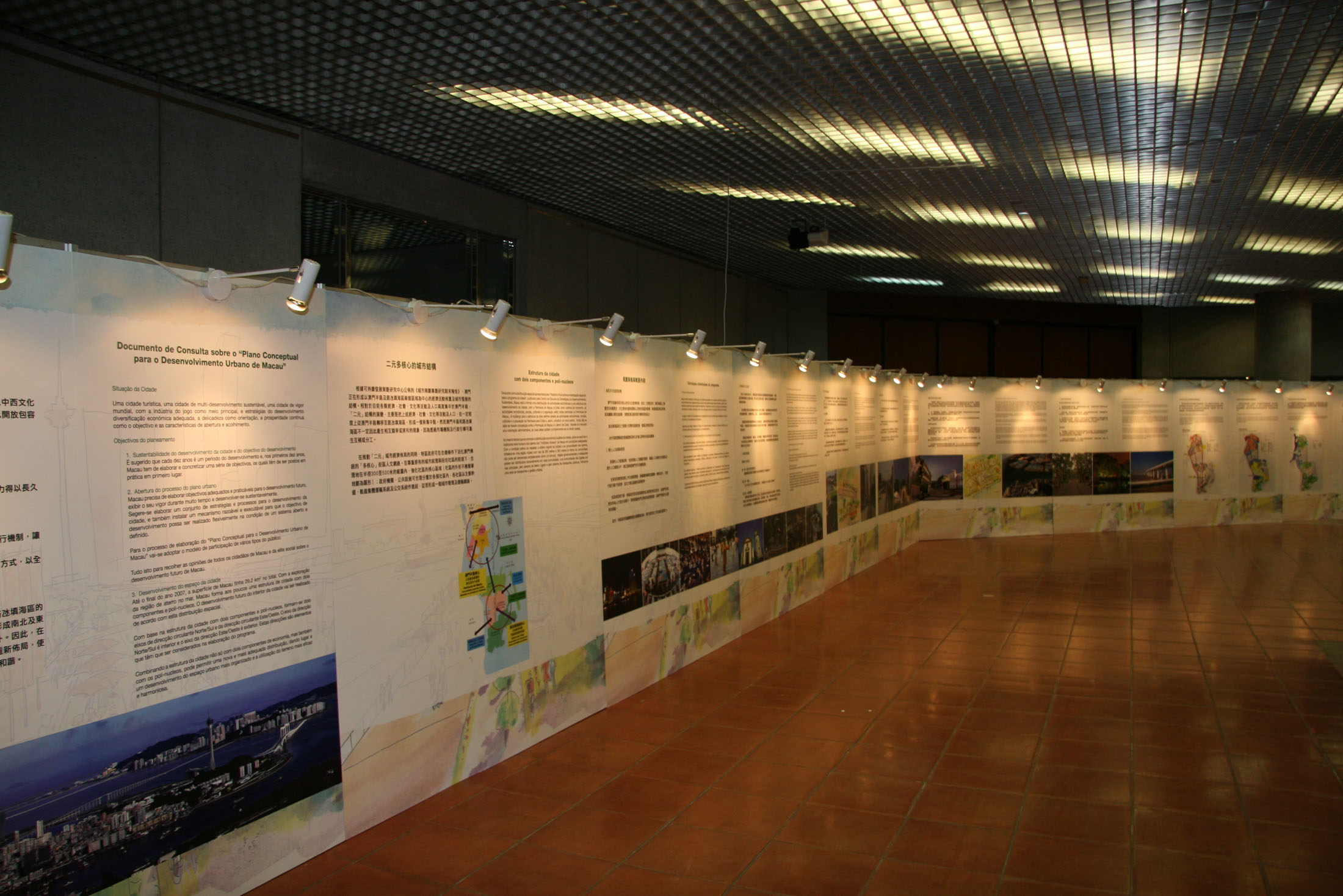是次展覽主要圍繞諮詢文本的內容作介紹,包括了《澳門城市概念性規劃綱要》諮詢文本提出的經濟、人口、文化、區域空間佈局和綠色生態環境五大策略要點,以及就這些策略相應提出的行動計劃,包括構建新交通模式、拓展城市新空間、城市生態恢復、歷史街區保護和都市更新改造。由於有關策略和行動計劃是涉及澳門未來二、三十年的發展規劃,展板中相應以概念圖來說明有關規劃建議。