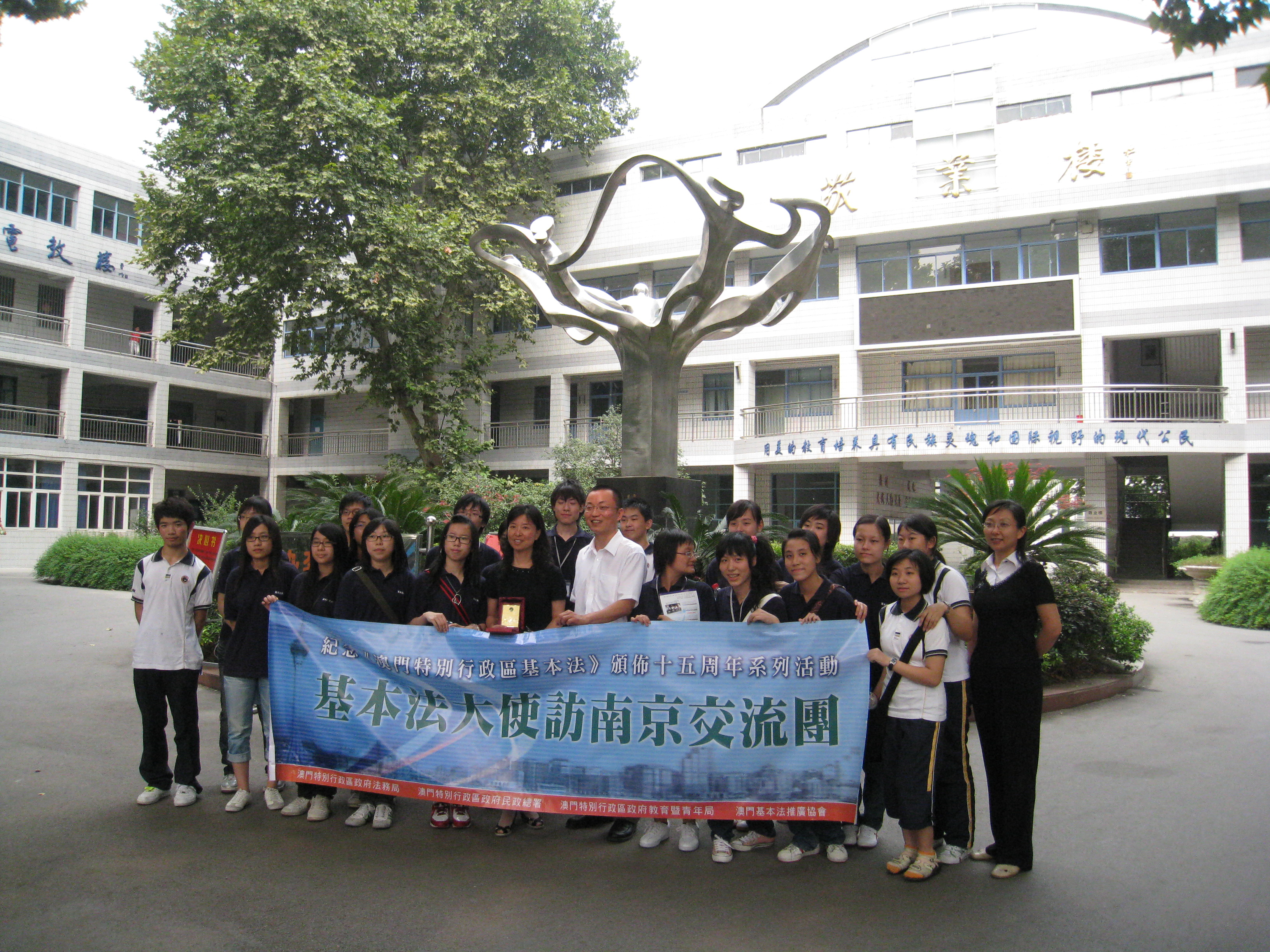 基本法大使南京交流團於八月二十五日出發,前往南京進行為期五天的交流參觀,交流團一行十七人,由法務局法律推廣廳職務主管唐伯福擔任團長,團員包括奪得本年“基本法與特區法律問答比賽”的兩支冠軍隊伍的成員,即獲得學生組冠軍的澳門坊眾學校的學生,以及獲得青年組冠軍的濠江中學學生會的成員,另外還包括積極參與法務局法律推廣工作的義工。