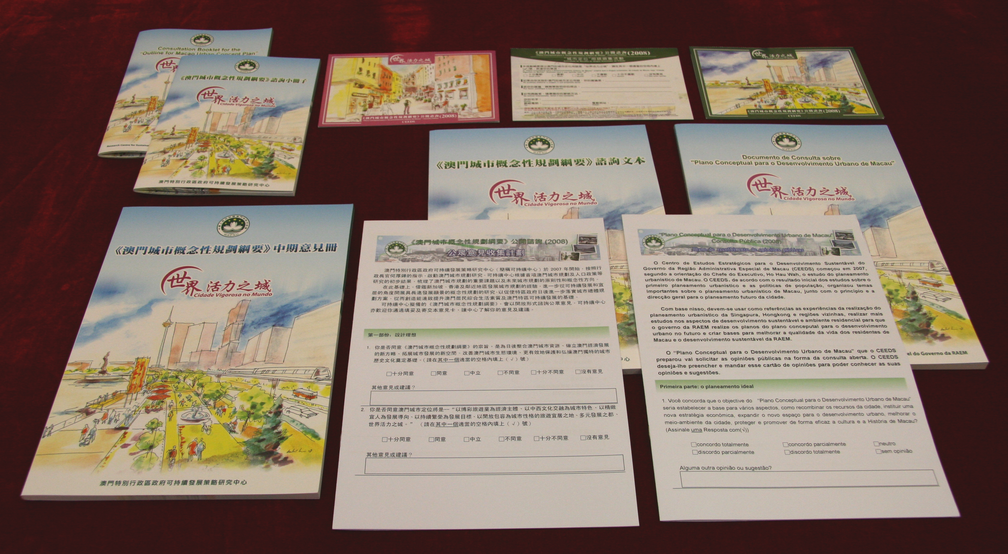 是次公開諮詢的意見卡,除了可以在《澳門城市概念性規劃綱要》公開諮詢的網站http://www.cplan2008.gov.mo下載及經電郵info@cplan2008.gov.mo回收外,市民仍可在全澳八個地點索取及遞交意見卡,該八個地點分別是公共行政大樓、黑沙灣市民服務中心、澳門大學圖書館、澳門理工學院圖書館、澳門科技大學圖書館、澳門街坊會聯合總會屬下的家庭服務中心、栢蕙活動中心以及可持續發展策略研究中心,市民亦可致電28389868查詢。