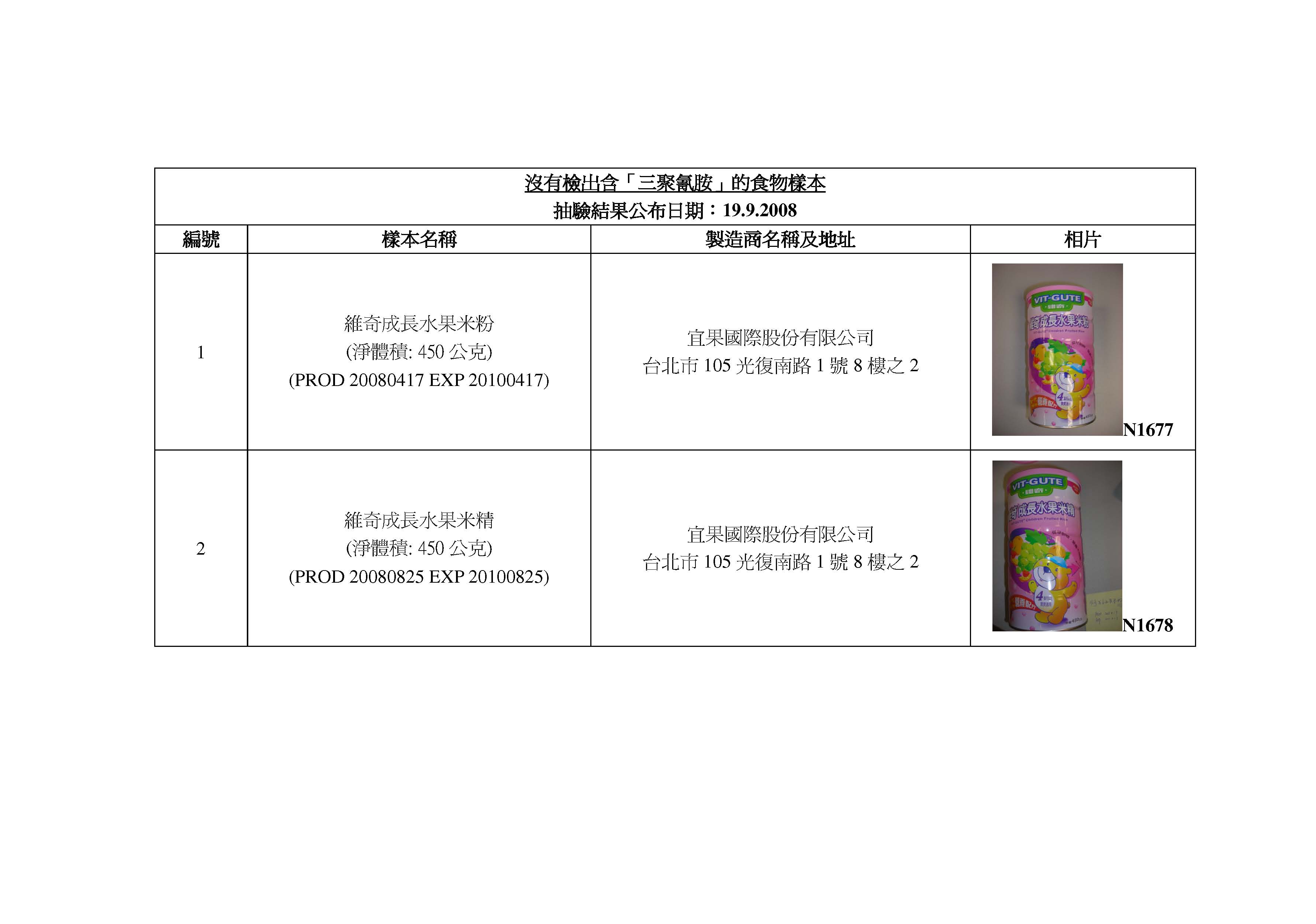 被檢出含「三聚氰胺」的‘伊利’高鈣低脂奶類飲品分別是: 1公升裝 (生產日期:10/05/2008) (「三聚氰胺」含量為:2.0mg/Kg);以及250亳升裝 (生產日期:22/02/2008) (「三聚氰胺」含量為:5.0mg/Kg)。(詳見附件) 。