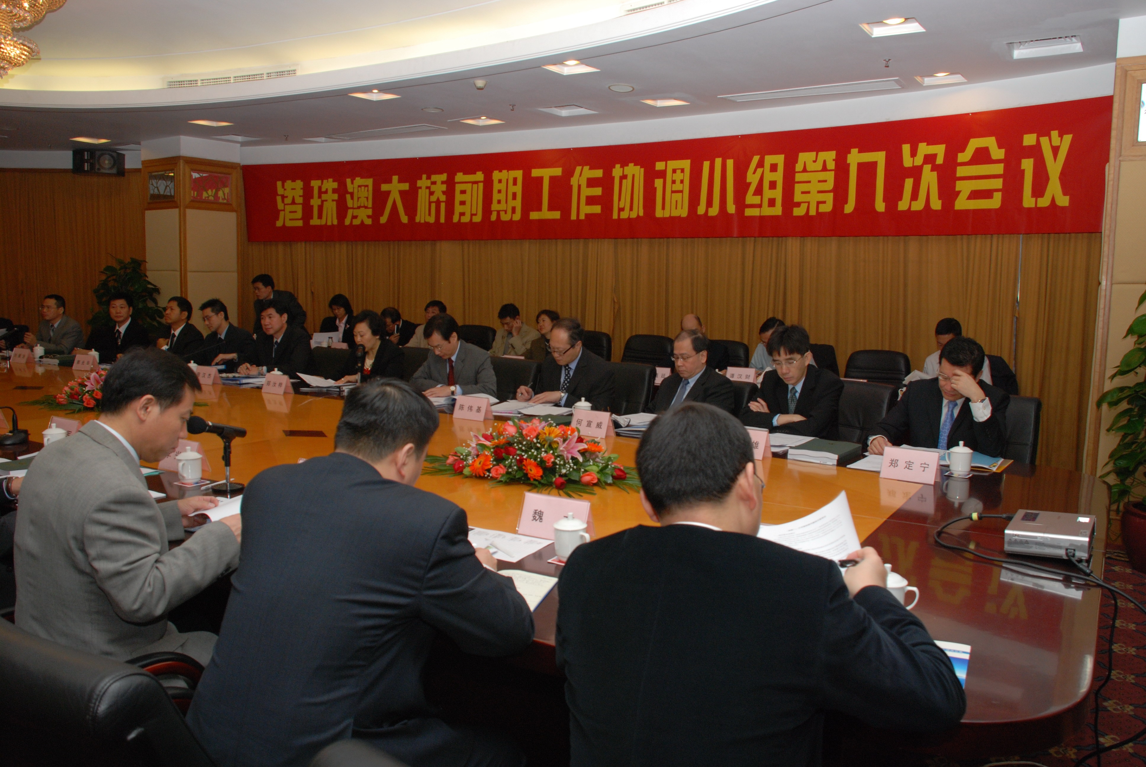 港珠澳大橋前期工作協調小組今日(二十七日)於廣州舉行第九次會議,會後粵、港、澳三方就大橋工程可行性研究報告的上報方式、大橋的初步設計招標及項目組織架構的模式達成共識。