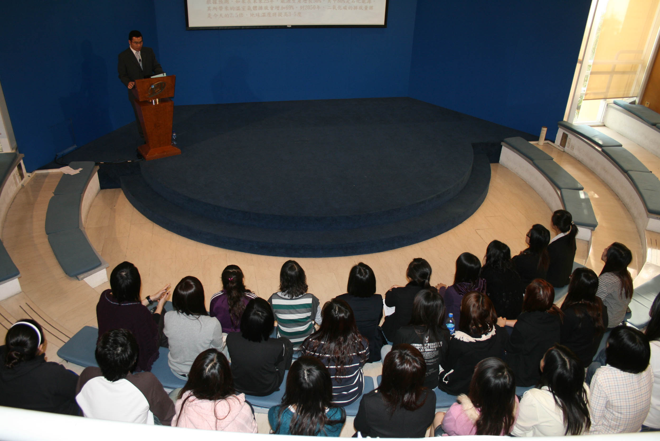 會上,能源業發展辦公室技術顧問張振良分別介紹了能源消費與氣候變化的情況、能源與可持續發展之關係、全球對抗氣候變化的策略、本澳政府進行的節能減排工作等內容。還分別以照明篇、冷氣篇、熱水爐篇和洗衣機篇為題,介紹各種實用的節能方法,將節能概念化為簡單易明的例子,使學生易於理解,日後應用在日常生活。
