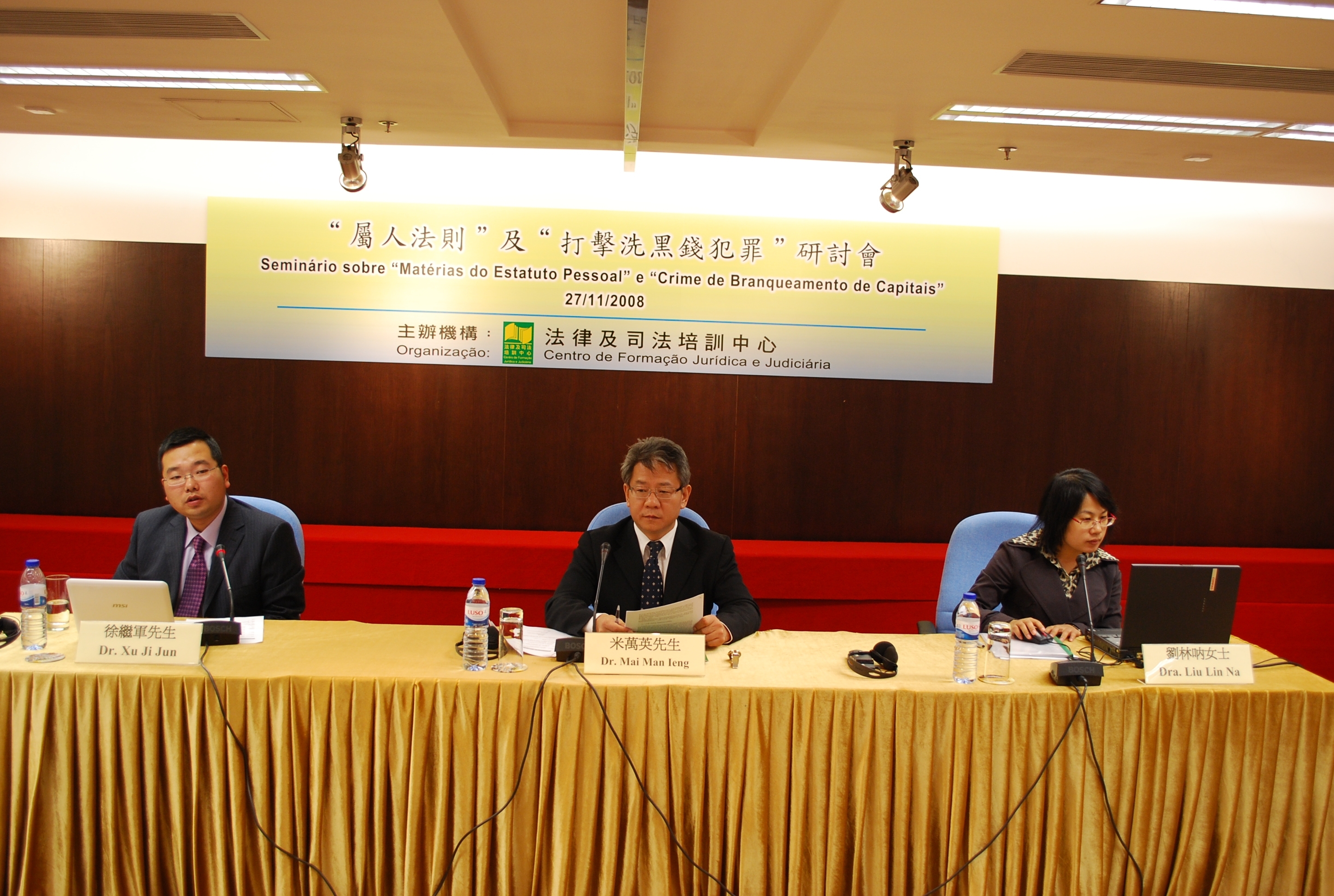 法律及司法培訓中心於上周四及五(11月27日及28日),一連兩天,假法律改革辦公室演講廳舉行有關“屬人法則”、“打擊洗黑錢犯罪”及“司法官培訓”的研討會,由澳門特區檢察院檢察官、兼專門培訓司法官的法律及司法培訓中心教學委員會委員米萬英先生擔任研討會主持人,並由國家法官學院及國家檢察官學院的教授及專家應邀來澳擔任主講嘉賓。