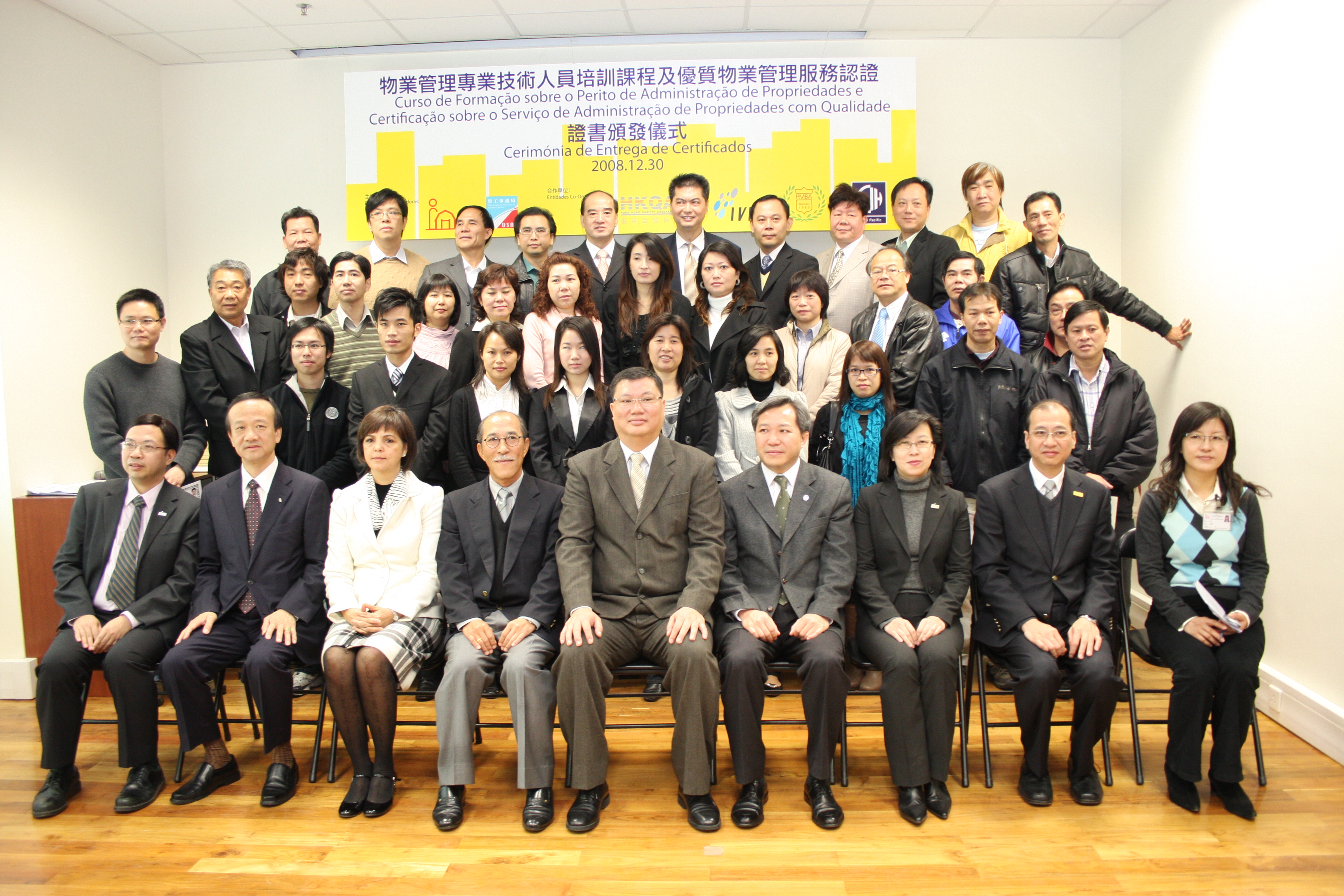 為推動本澳物業管理服務走向專業化並提高行業水平,以配合即將推出之從事樓宇管理業務及管理服務人員職業的法律制度的推行,房屋局和勞工事務局再度合作開辦了「第三期物業管理專業技術人員培訓課程」, 並邀請到香港職業訓練局香港專業教育學院(摩理臣山)、英國特許房屋經理學會亞太分會及澳門物業管理業商會度身設計本課程。此外,房屋局亦邀得香港品質保證局協助推行「優質物業管理服務認證計劃」,以專業方法對本澳物業管理公司之服務內容及能力進行認證。上述二項之證書頒發儀式於本年12月30日假房屋局大樓六樓舉行。