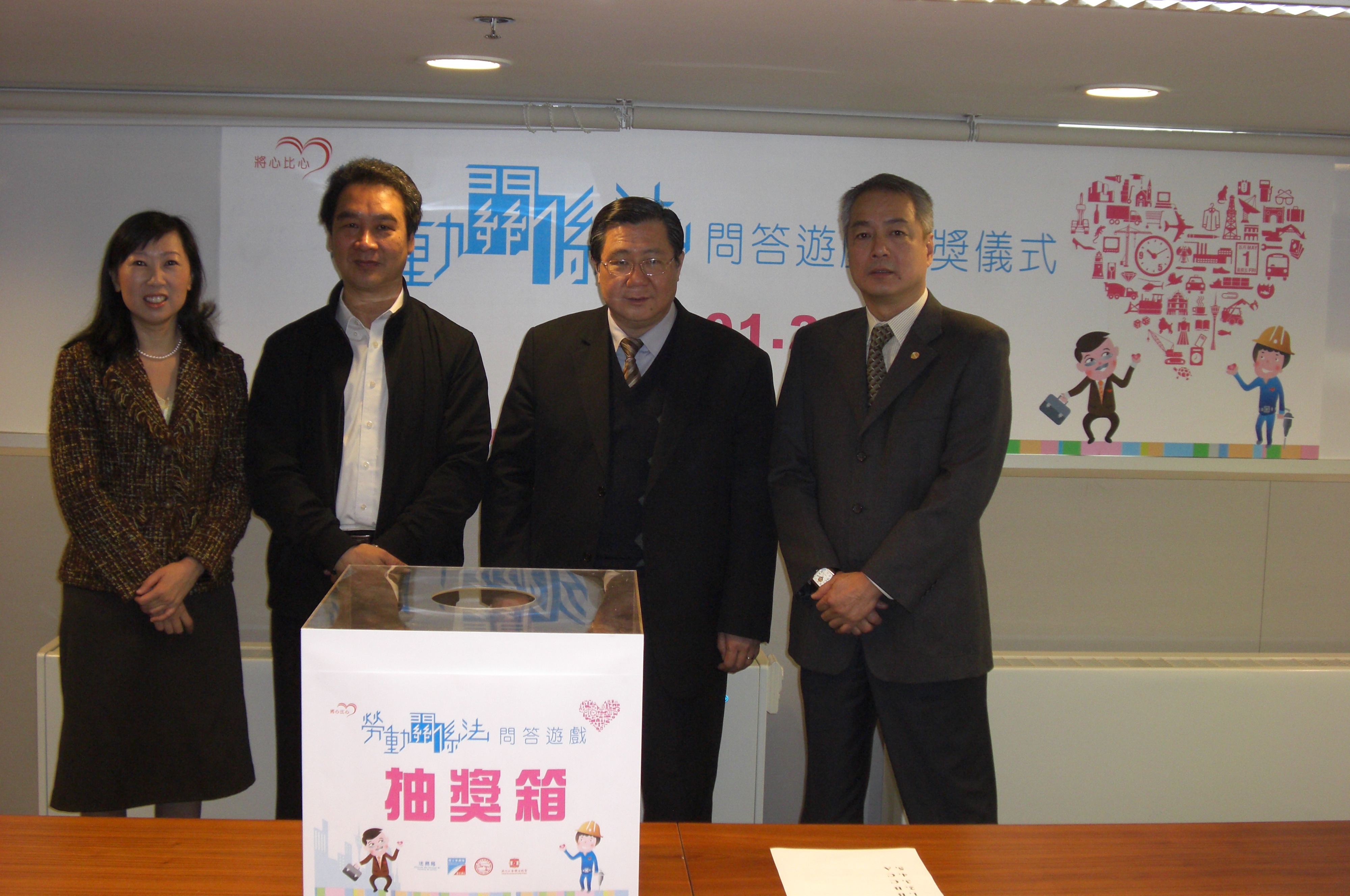《勞動關係法》報章問答遊戲抽獎儀式在勞工事務局舉行。主辦單位代表法務局代副局長梁葆瑩、代廳長羅靜萍、勞工事務局局長孫家雄、職務主管黃健清、澳門中華總商會副理事長余健楚、副秘書長陳國銓、澳門工會聯合總會理事長陳錦鳴及公關活動科主任謝蓮秀出席了抽獎活動,並分別抽出各個獎項。得獎名單如下:
