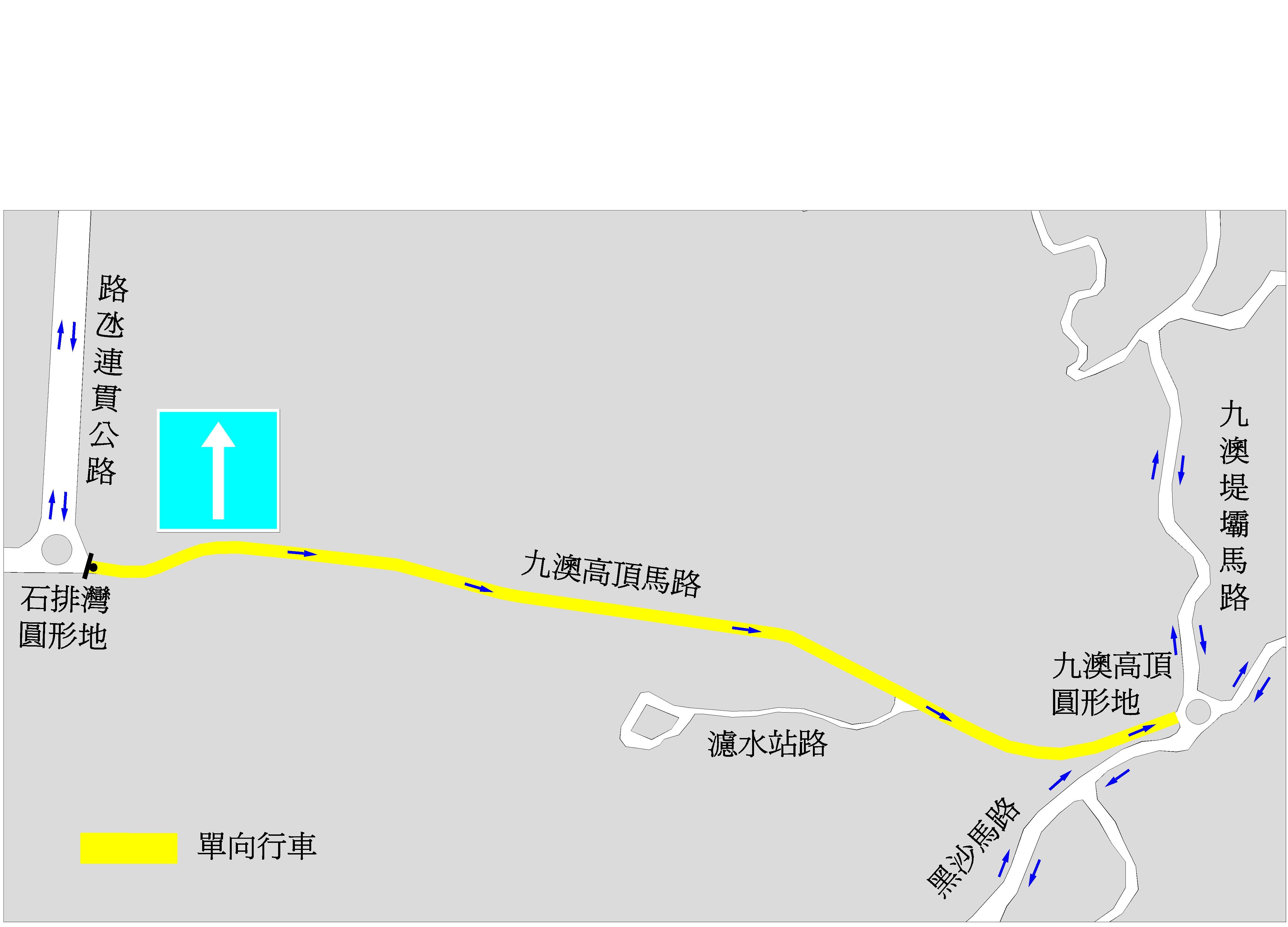 路環九澳高頂馬路交通改動示意圖