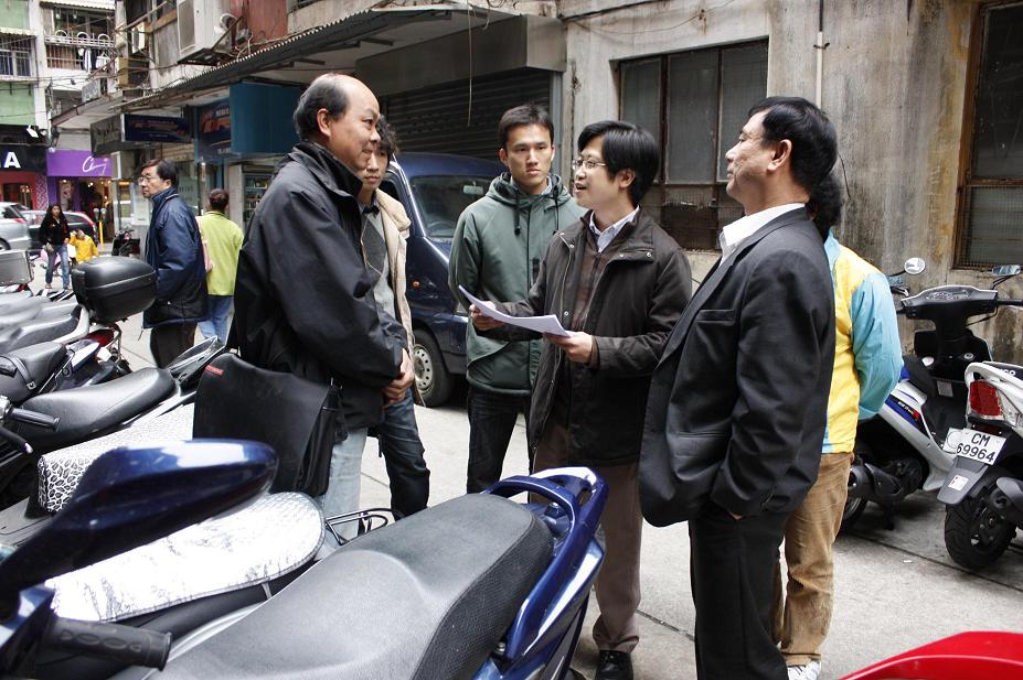 為更好地聽取居民對整治羅利老台的意見,日前交通事務局道路工程處處長鄺偉卓聯同相關人員一行五人拜訪了新橋坊眾互助會,並到羅利老台實地視察。鄺偉卓表示,交通事務局十分關注羅利老台的交通環境,並已著手展開相關的交通整治研究工作,考慮到要保障居民的安全通行,同時須顧及附近居民的泊車及車輛上落客貨的需要,局方初步擬定三個整治方案,分別是一、禁止所有車輛在巷內停泊,只允許輕型車輛或貨車上落客貨;二、在不影響居民出入的情況下,在巷內設置適量的電單車泊位,並禁止車輛進入,再另覓地點供車輛上落客貨;三、日間允許車輛上落客貨,晚間則劃出有時限的臨時泊車位。