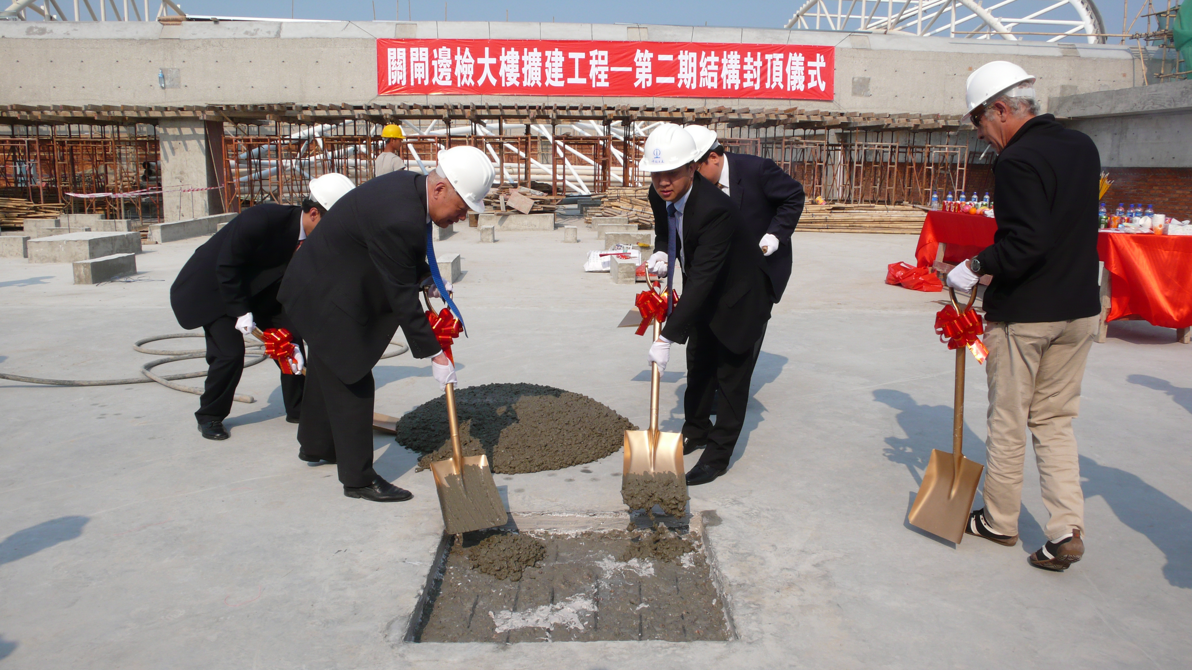 關閘邊檢大樓第二期擴建工程,日前進行大樓結構部分的平頂儀式,工程現進入內部裝修及設備安裝階段。建設發展辦公室會於短期內對大樓內顯示屏系統的採購及安裝進行公開招標,有關工程最長交貨及安裝期為120天,預計整項擴建工程將如期於今年下半年內竣工。