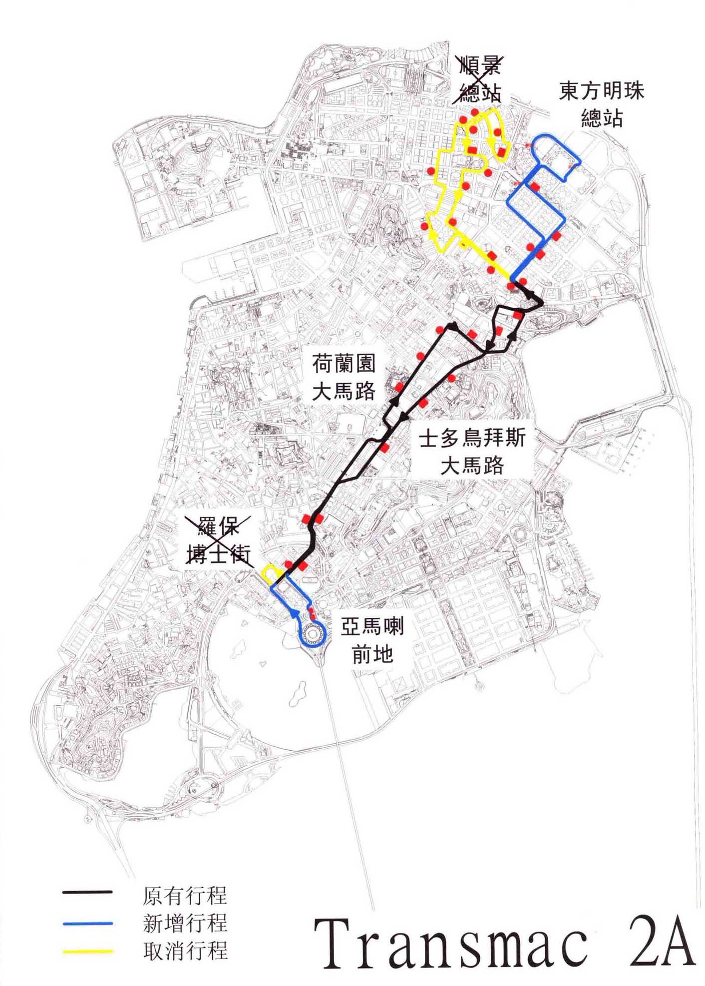 為回應公眾往返東北區及中區的巴士服務需求,交通事務局本月26日推出第二階段巴士路線調整中,將現時2短線和7短線更改為2A和7A,並調整其總站至東方明珠街和亞馬喇前地轉乘區,以加強東北區及中區的公交服務。