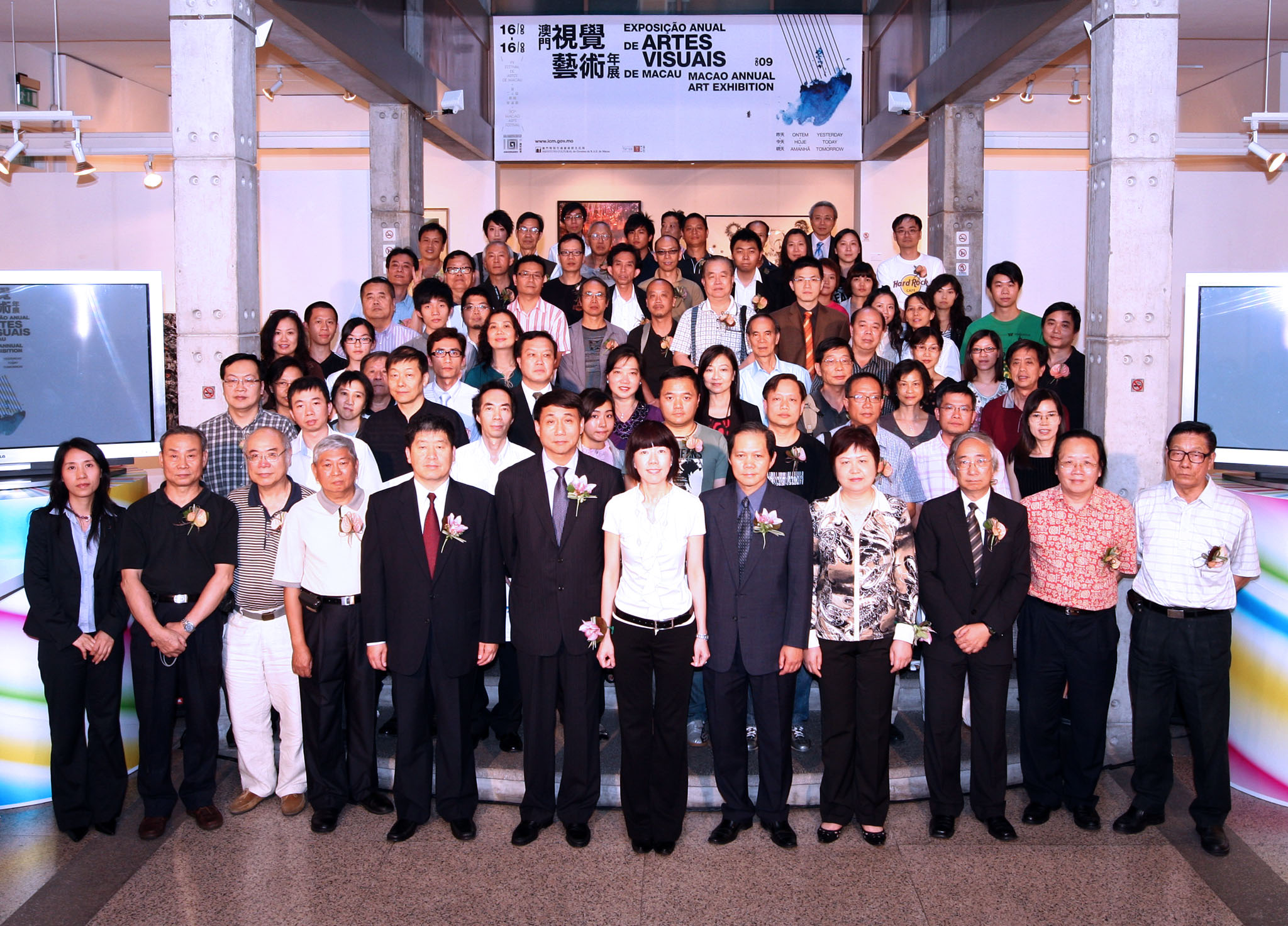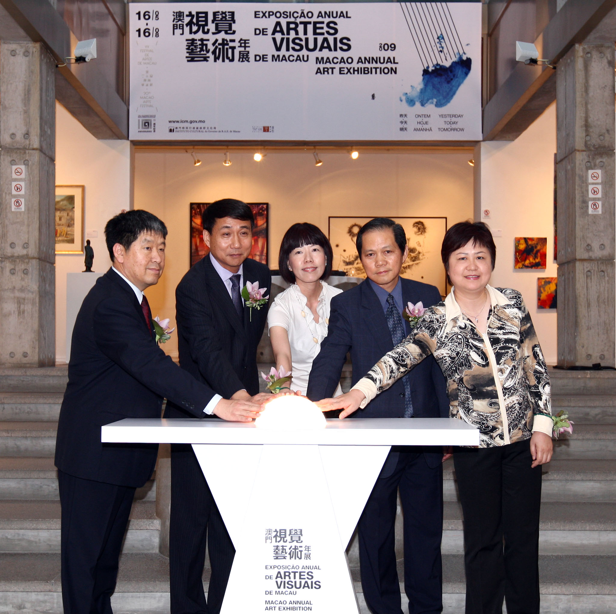 第二十屆澳門藝術節大型展覽“2009澳門視覺藝術年展”昨日(5月15日)在塔石藝文館正式開幕,文化局局長何麗鑽、中聯辦文化教育部副部長張曉光、外交部駐澳門特派員公署綜合業務部主任馬亞歐、本澳資深藝術家黎榮照,以及文化局副局長王世紅出席主持開幕,同場揭曉“十佳”優秀作品,場面熱閙。