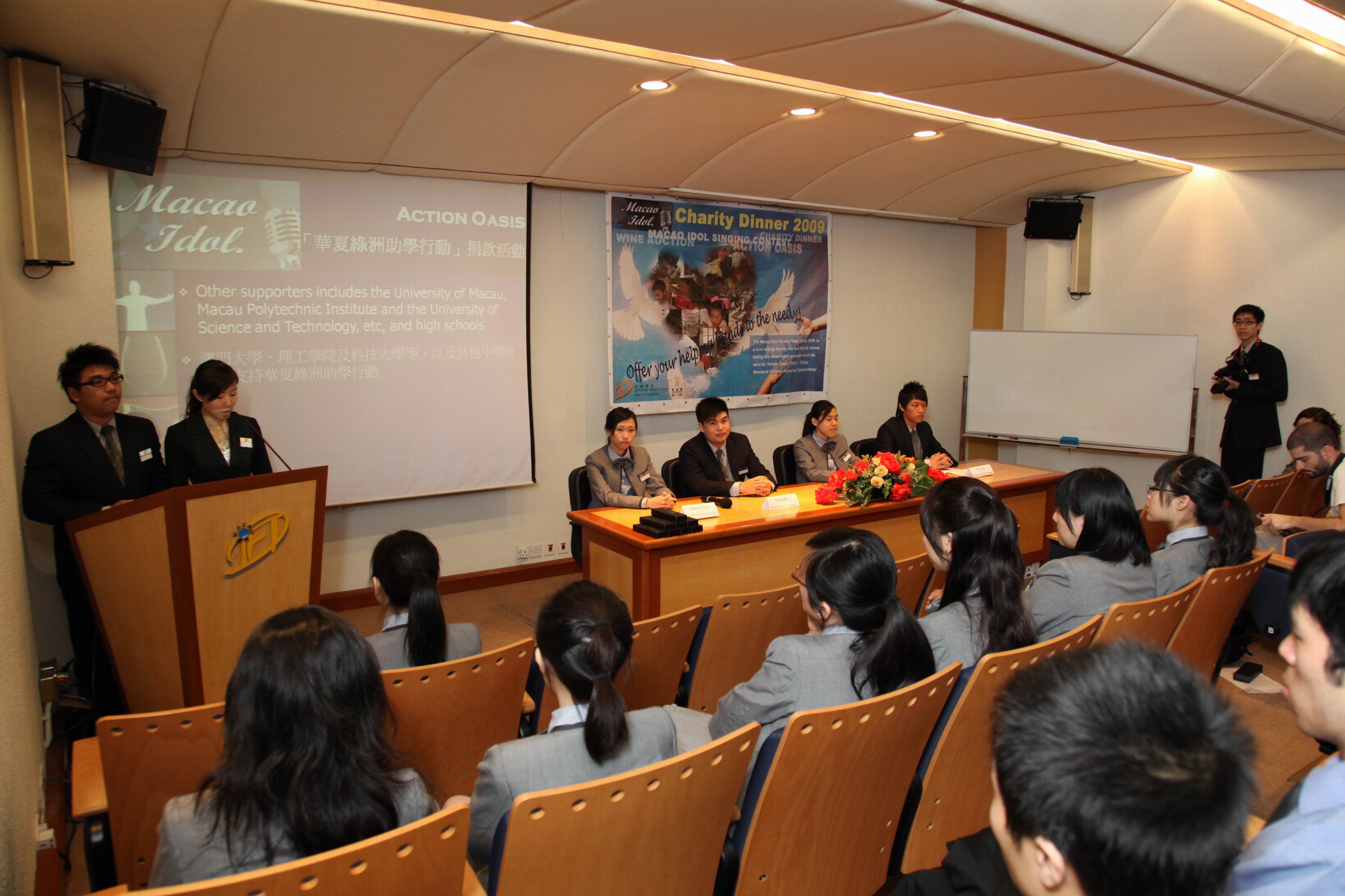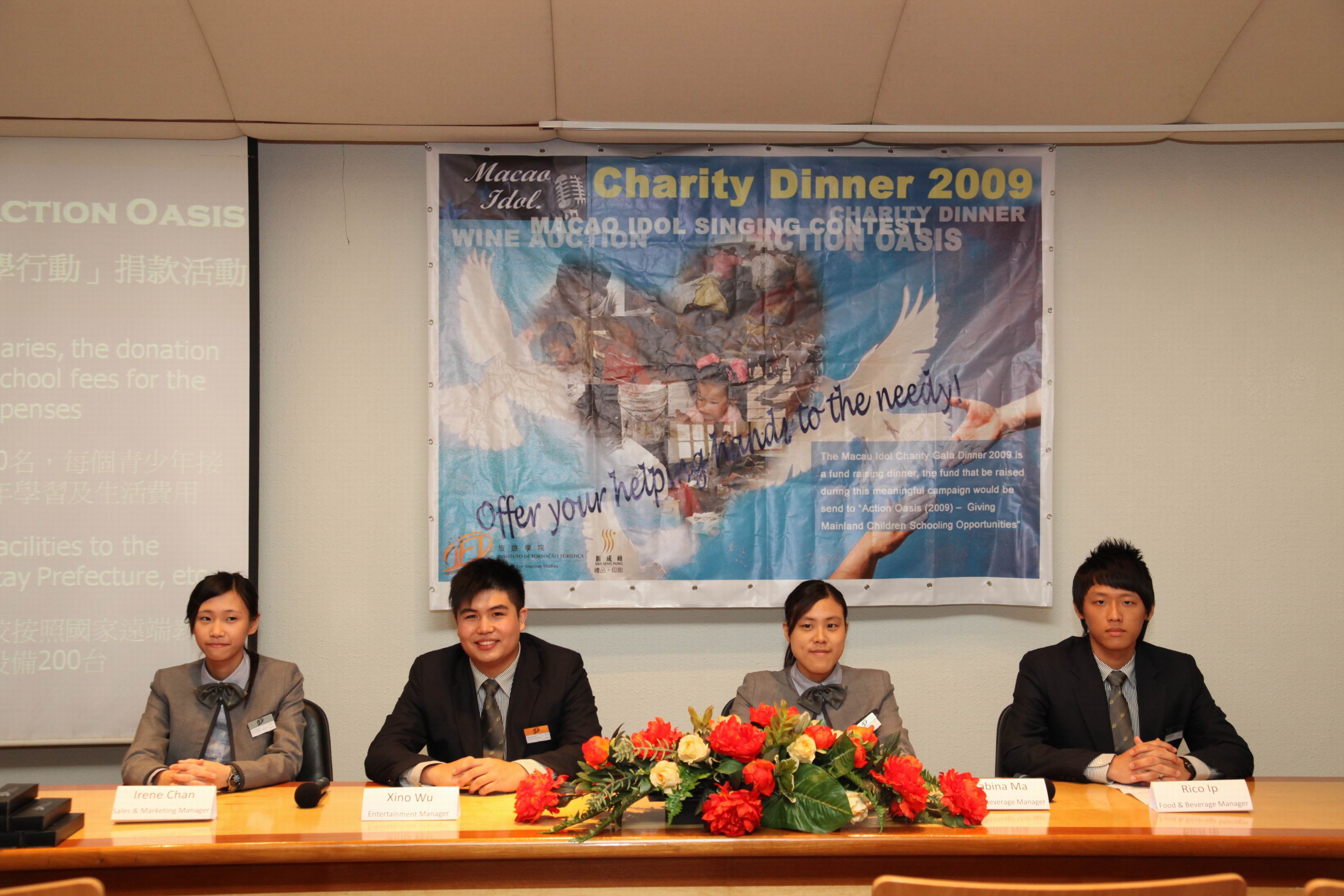 旅遊學院酒店管理專業二年級學生將於5月22日晚上於學院教學餐廳舉行2009年度「澳門偶像」慈善籌款晚宴。