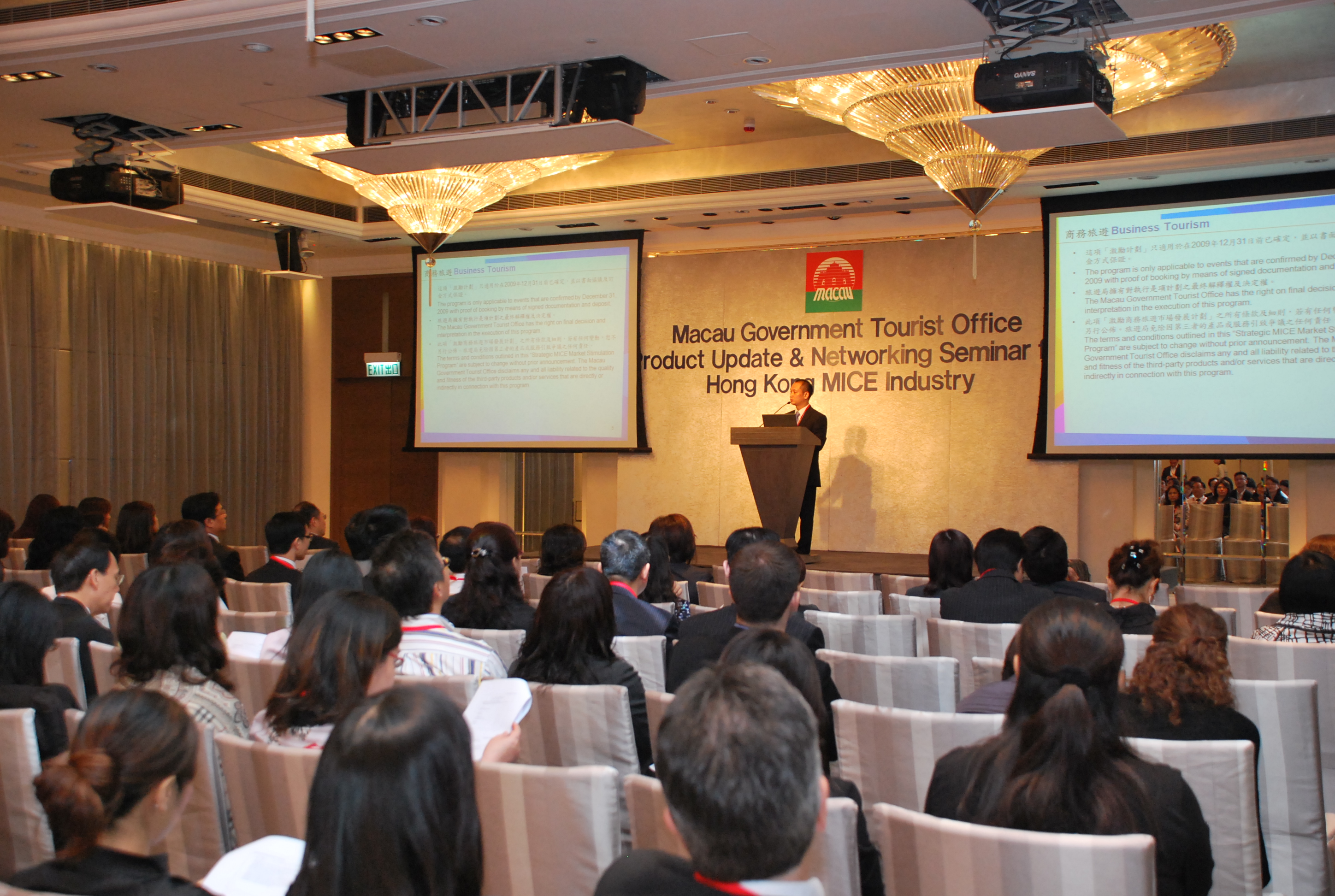 在今天的交流會中,除了澳門旅遊局簡介澳門旅遊業的最新發展和澳門作為會展及獎勵旅遊目的地的吸引之處外,其中五位來自澳門的業界也介紹了各自的新會展設施和產品。交流會的重點落在澳門商務旅遊中心講解新推出的「激勵商務旅遊市場發展計劃」。來自香港的商務旅行社、會議管理公司及企業代表均對這項計劃感興趣。