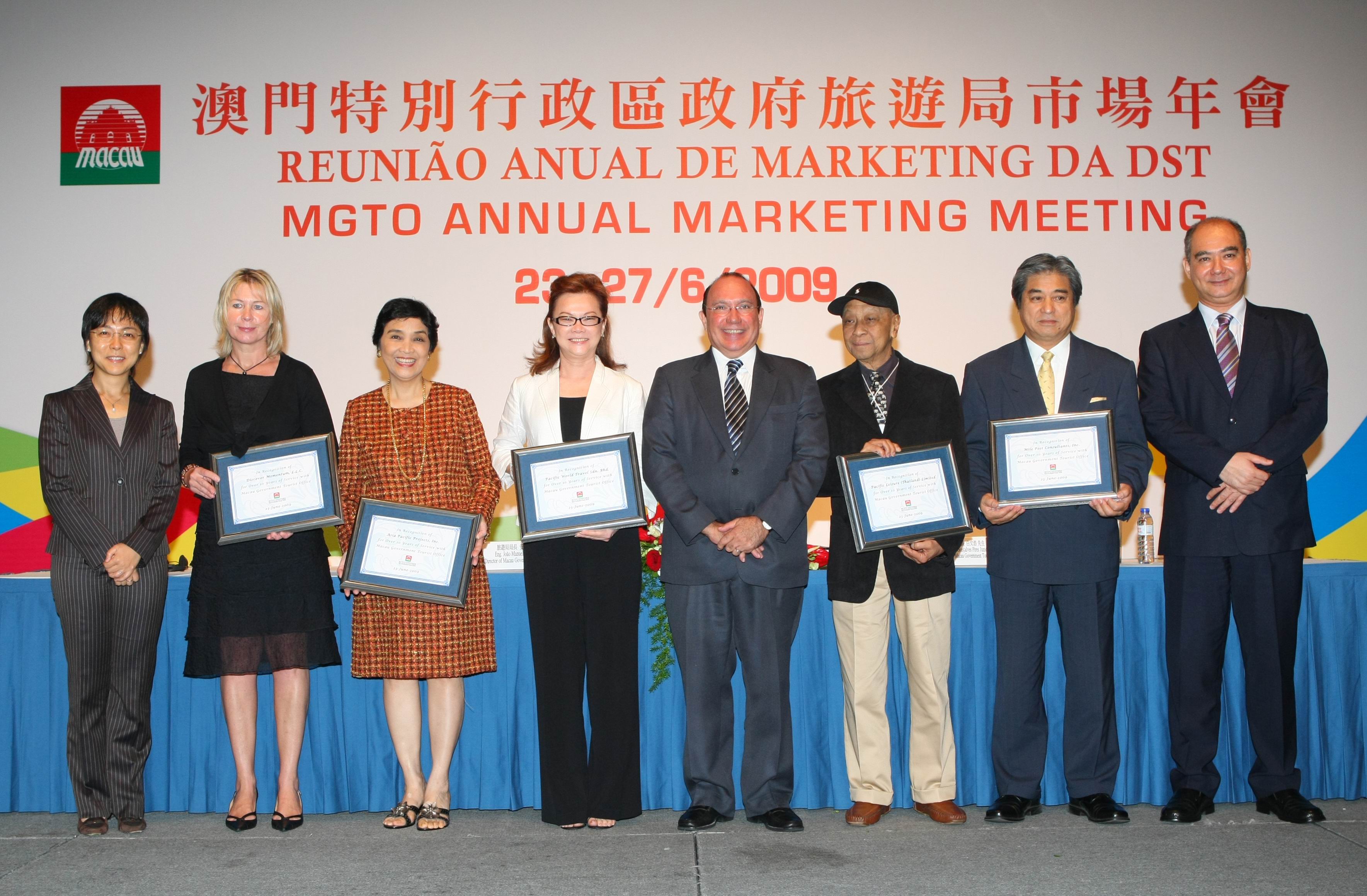 旅遊局利用一年一度的市場年會,與來自世界各地駐外代表共同商討策略,應付最新形勢。旅遊局向五個服務超過十年的駐外代表頒發嘉許狀,感謝他們的努力和貢獻。